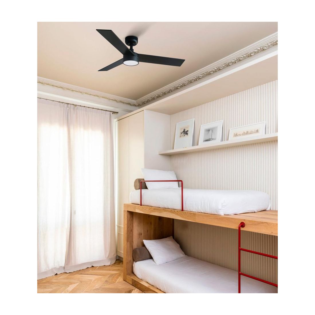 Il ventilatore integra una sorgente luminosa a Led da 18W racchiusa in un diffusore bianco opale in grado di offrire una resa luminosa di 806 lumen. Il sistema di illuminazione è Dimmerabile permettendo la regolazione della temperatura colore su tre livelli: 2700K – luce calda, 4000K – luce bianca naturale e 6500K – luce fredda.