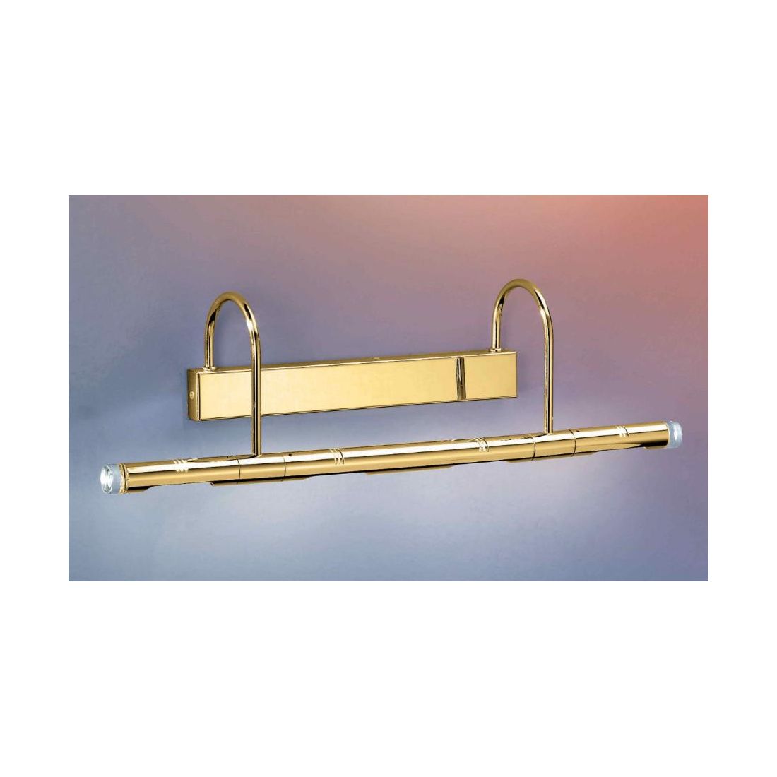 Rudy è un applique a parete della lunghezza di cm 56 realizzata interamente in metallo Dorato lucido con quattro diffusori cilindrici, indipendenti e orientabili che offrono un fascio di luce diretto verso il basso rendendo questa applique particolarmente adatta sopra lo specchio del bagno.
