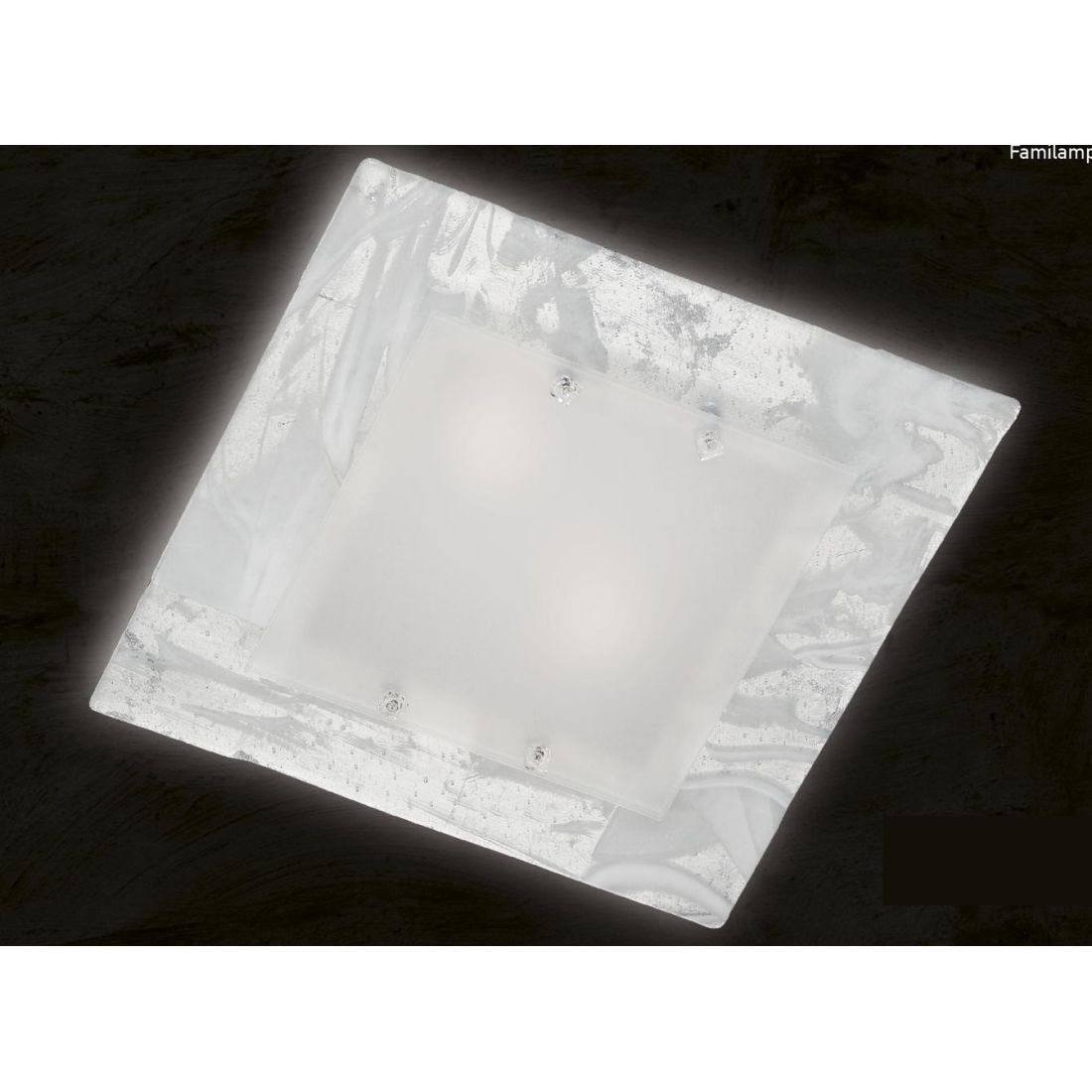 SAHARA PLAFONIERA CM 35x35 IN VETRO DECORO FOGLIA ORO O ARGENTO CLASSICA MADE IN ITALY