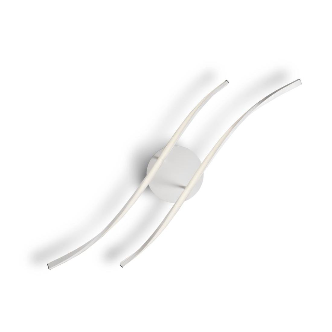 Applique dal design moderno che si adatta perfettamente ad ambienti con arredi moderni, con un corpo illuminante composto da due steli, con linee ondulate, realizzati in metallo con una finitura Bianca.