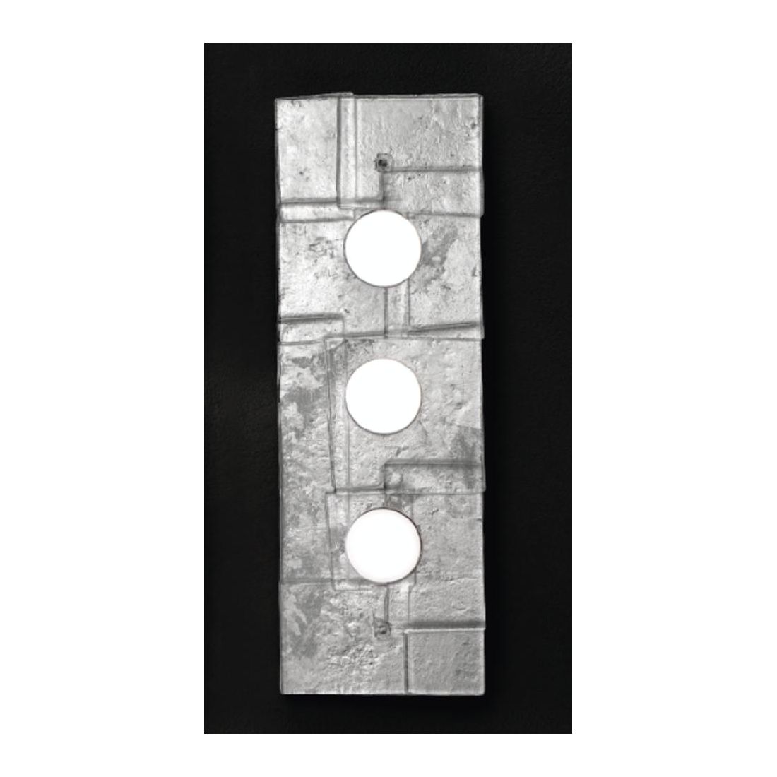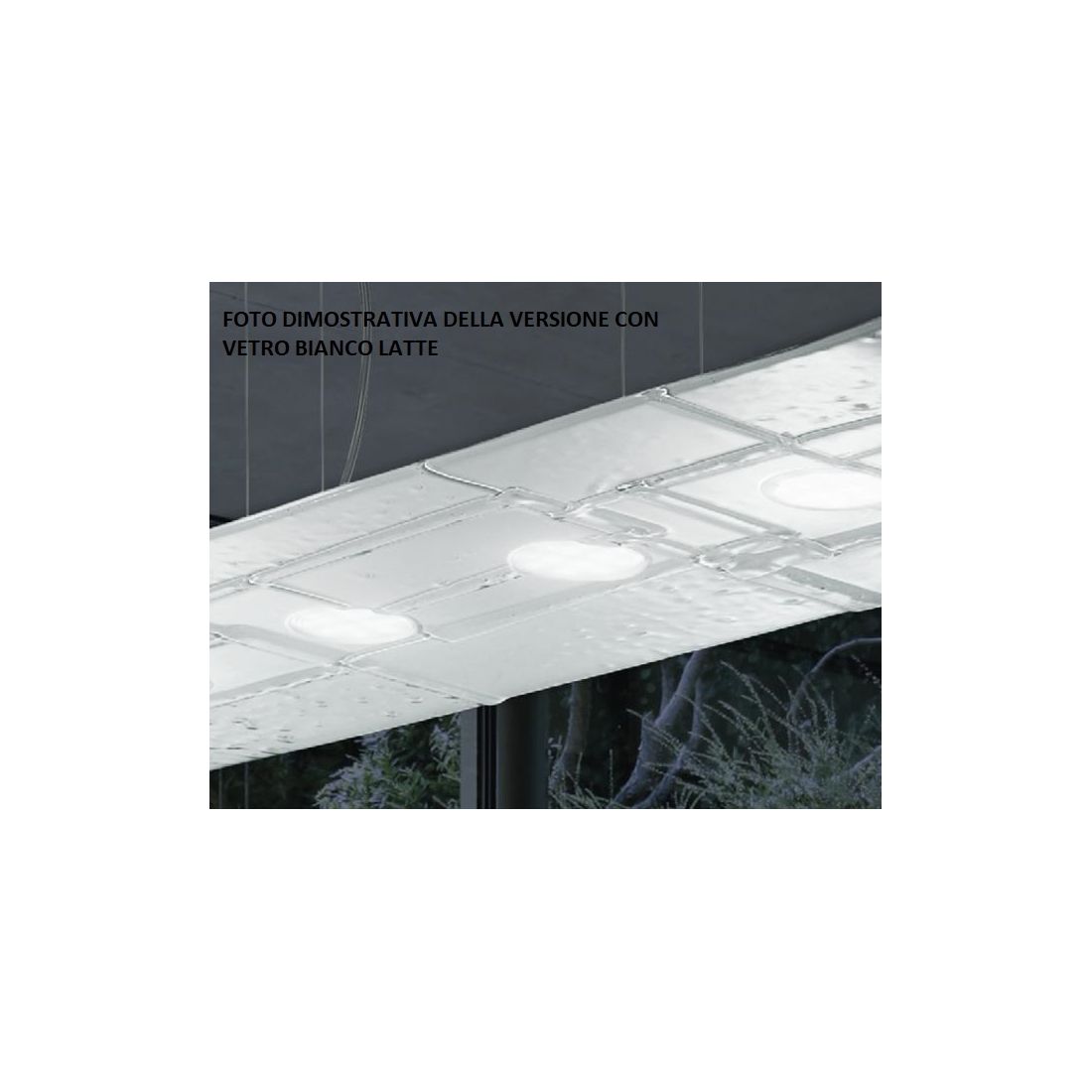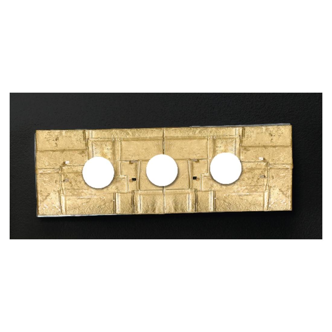Lampada da parete o da soffitto dal design moderno/contemporaneo, che si presenta con una forma rettangolare di cm 60x20, composta da una base in metallo e da un diffusore realizzato in vetro fuso caratterizzato da una particolare texture moderna e minimalista, assolutamente d' impatto, disponibile nei decori, a vostra scelta, Foglia Oro, Foglia Argento oppure Bianco latte.