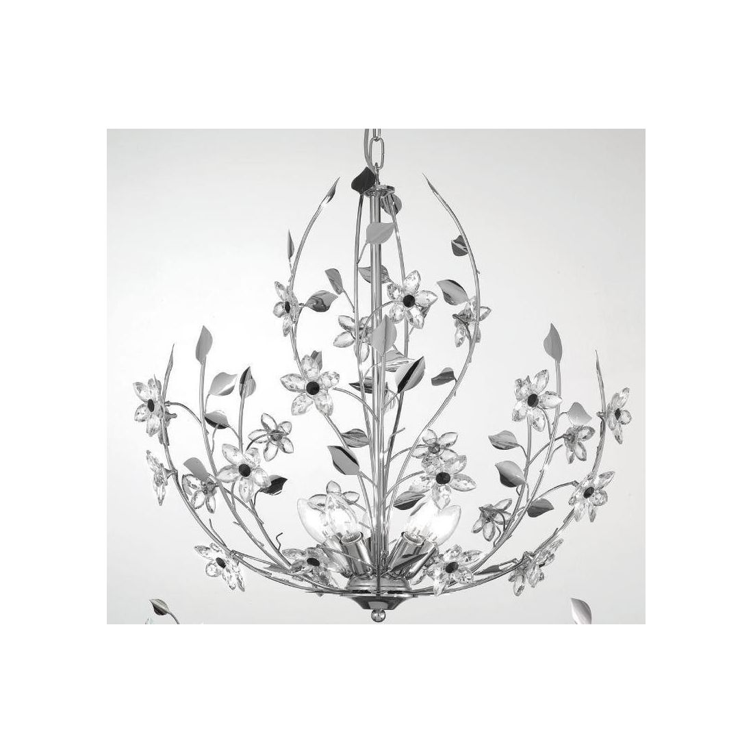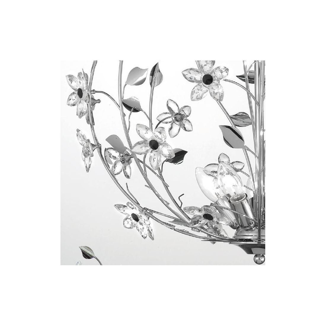 SANDRA PLAFONIERA 3 LUCI CLASSICA FINITURA CROMO CON FIORI DECORATIVI IN CRISTALLO