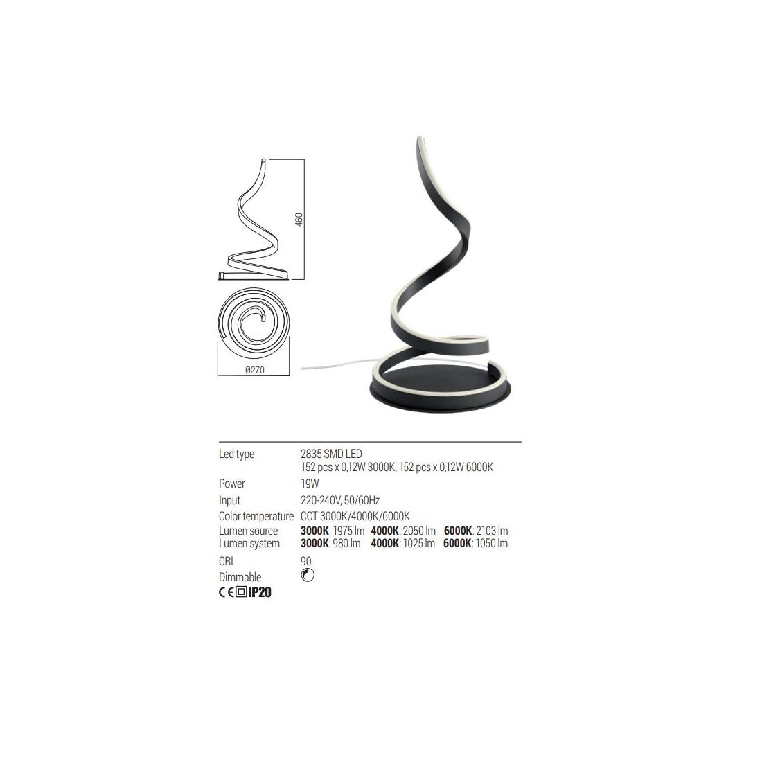 SCROLL PIANTANA SINUOSA A LED 30W LUCE CCT 3000K-4000K-6000K ALLUMINIO 3 COLORI MODERNA