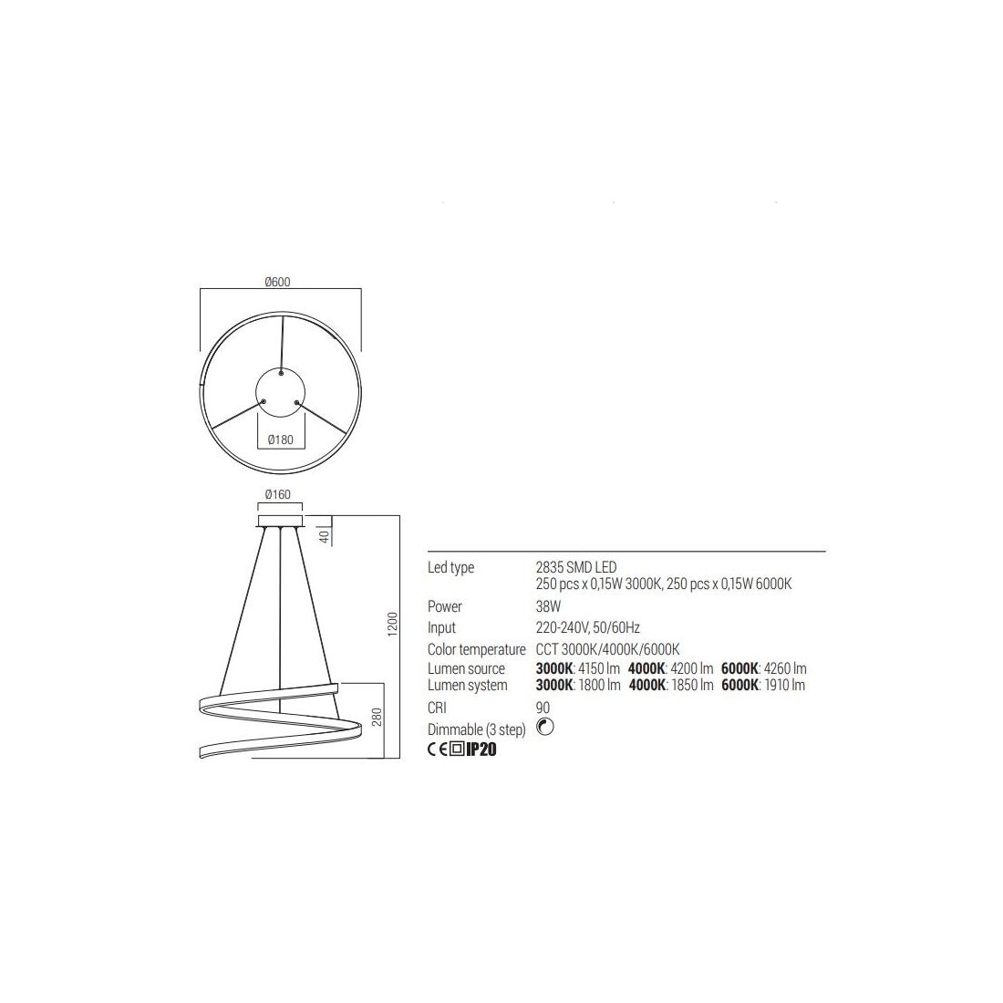 SCROLL PIANTANA SINUOSA A LED 30W LUCE CCT 3000K-4000K-6000K ALLUMINIO 3 COLORI MODERNA