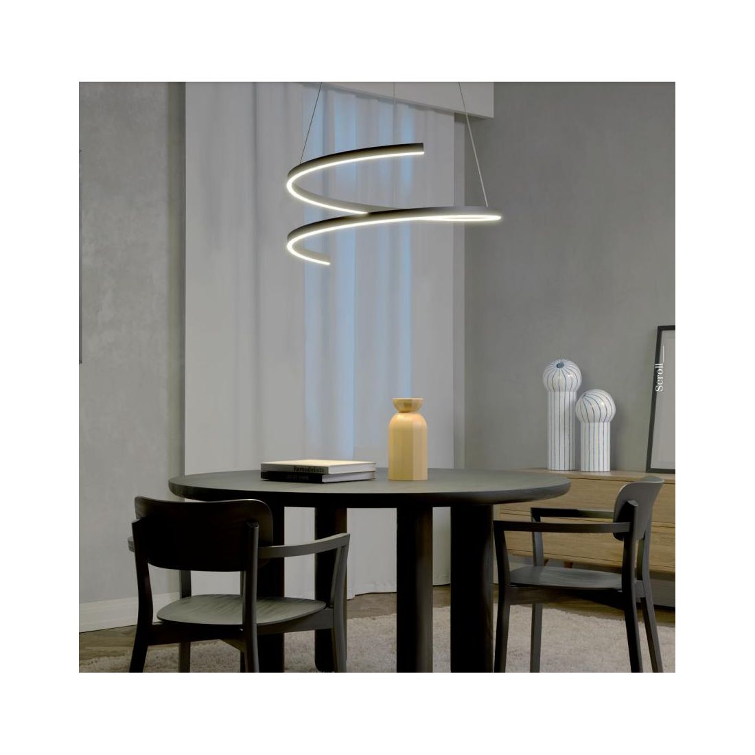 SCROLL PLAFONIERA SINUOSA 2 MISURE A LED LUCE CCT 3000K-4000K-6000K ALLUMINIO 3 COLORI...