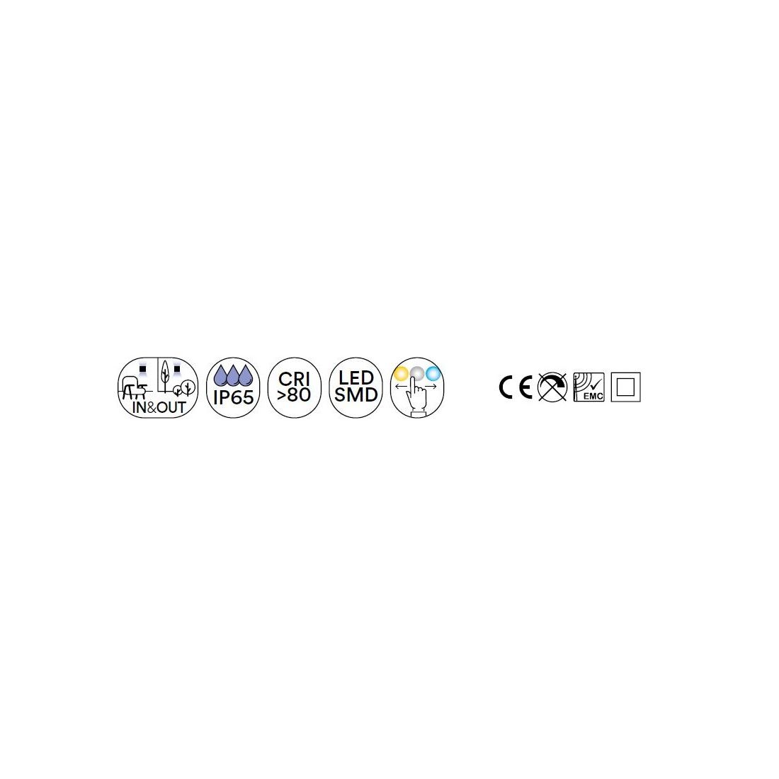 Il faretto integra una sorgente luminosa Led da 5w con flusso luminoso di 730 lumen, apertura fascio 120° e dispone di un pulsante interno che consente di regolare la temperatura colore della luce da bianca calda (3000k), bianca naturale (4000k) a bianca fredda (5500k).