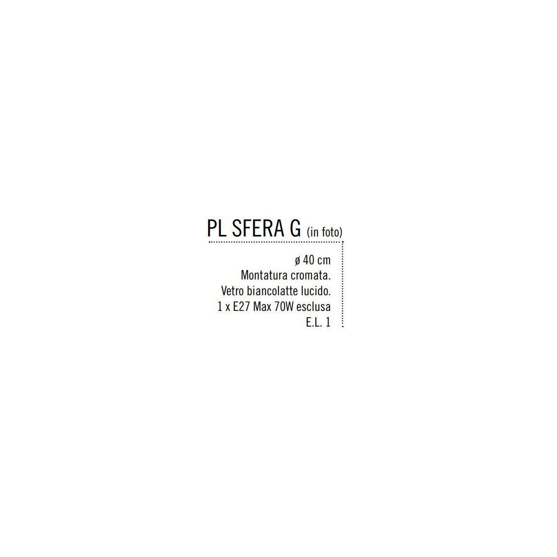 SFERA MEDIA PLAFONIERA IN VETRO BIANCO LUCIDO MONTATURA CROMO DIAMETRO 30CM