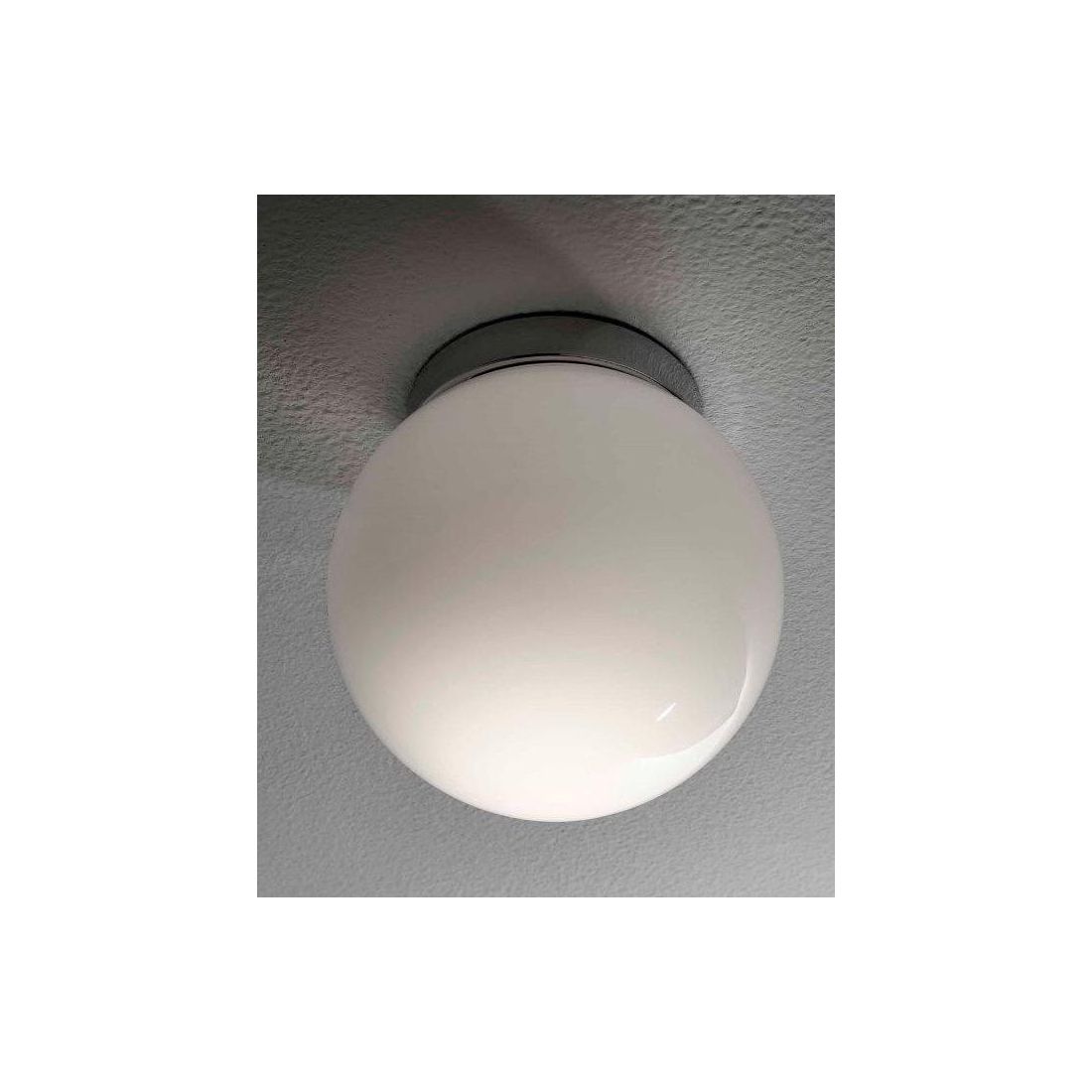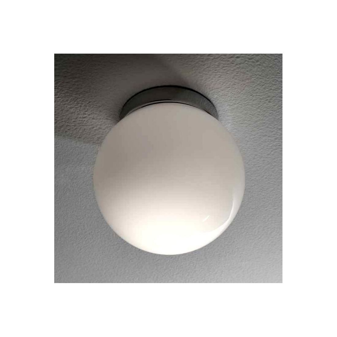 SFERA PICCOLA PLAFONIERA IN VETRO BIANCO LUCIDO MONTATURA CROMO DIAMETRO 15 CM
