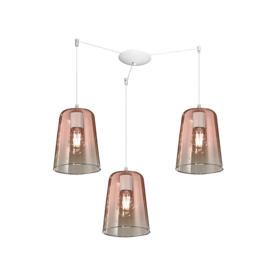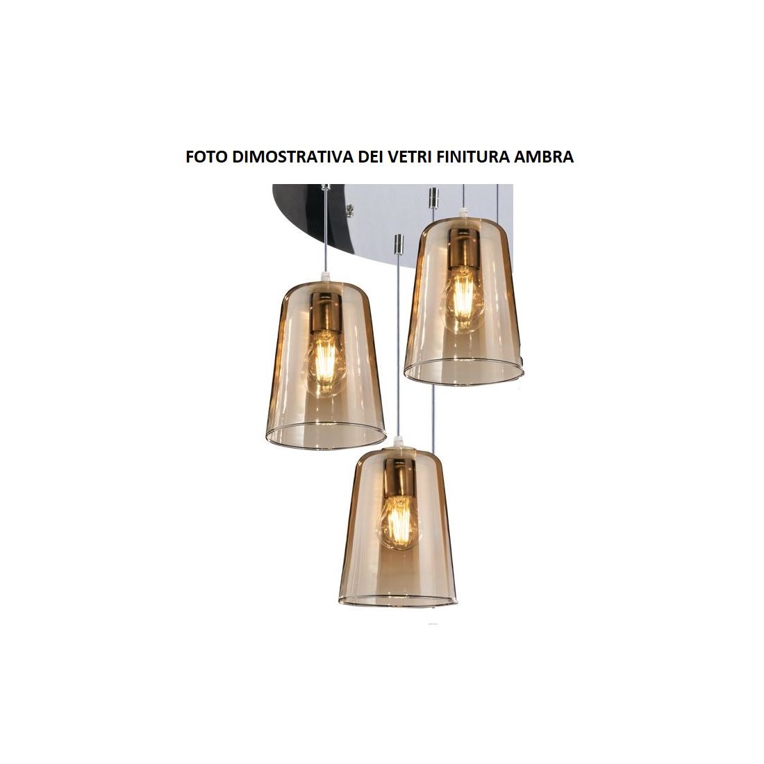 SHADED SOSPENSIONE 3 LUCI IN METALLO CROMATO CON CONI IN VETRO AMBRA CROMO OPPURE RAME