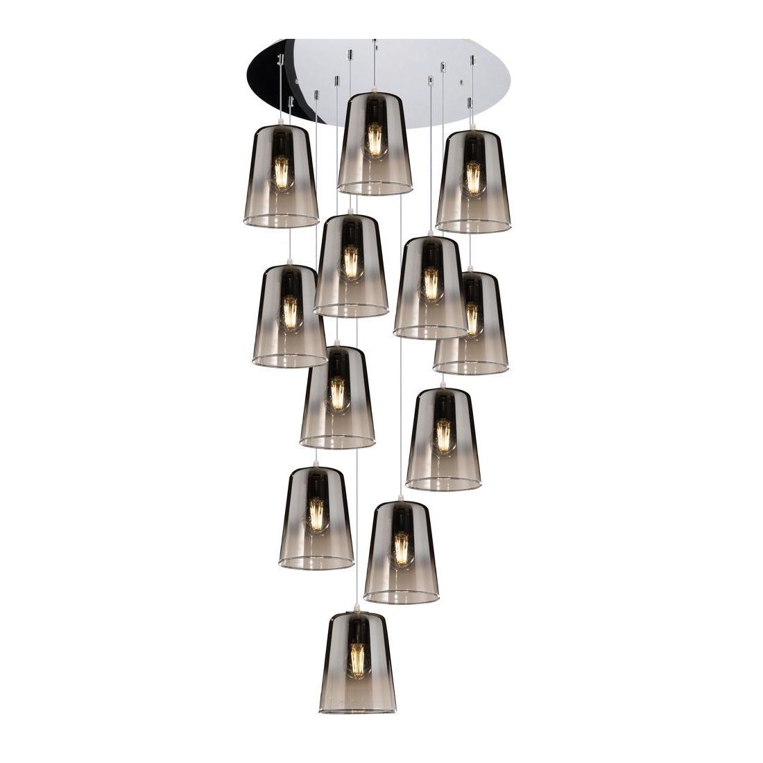 SHADED SOSPENSIONE CON DECENTRO IN METALLO CROMO CON CONI IN VETRO AMBRA CROMO OPPURE RAME