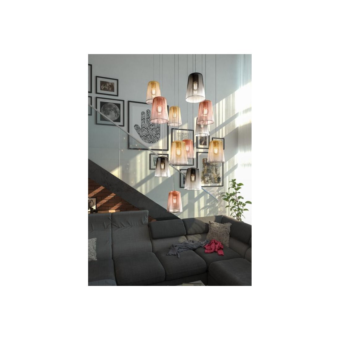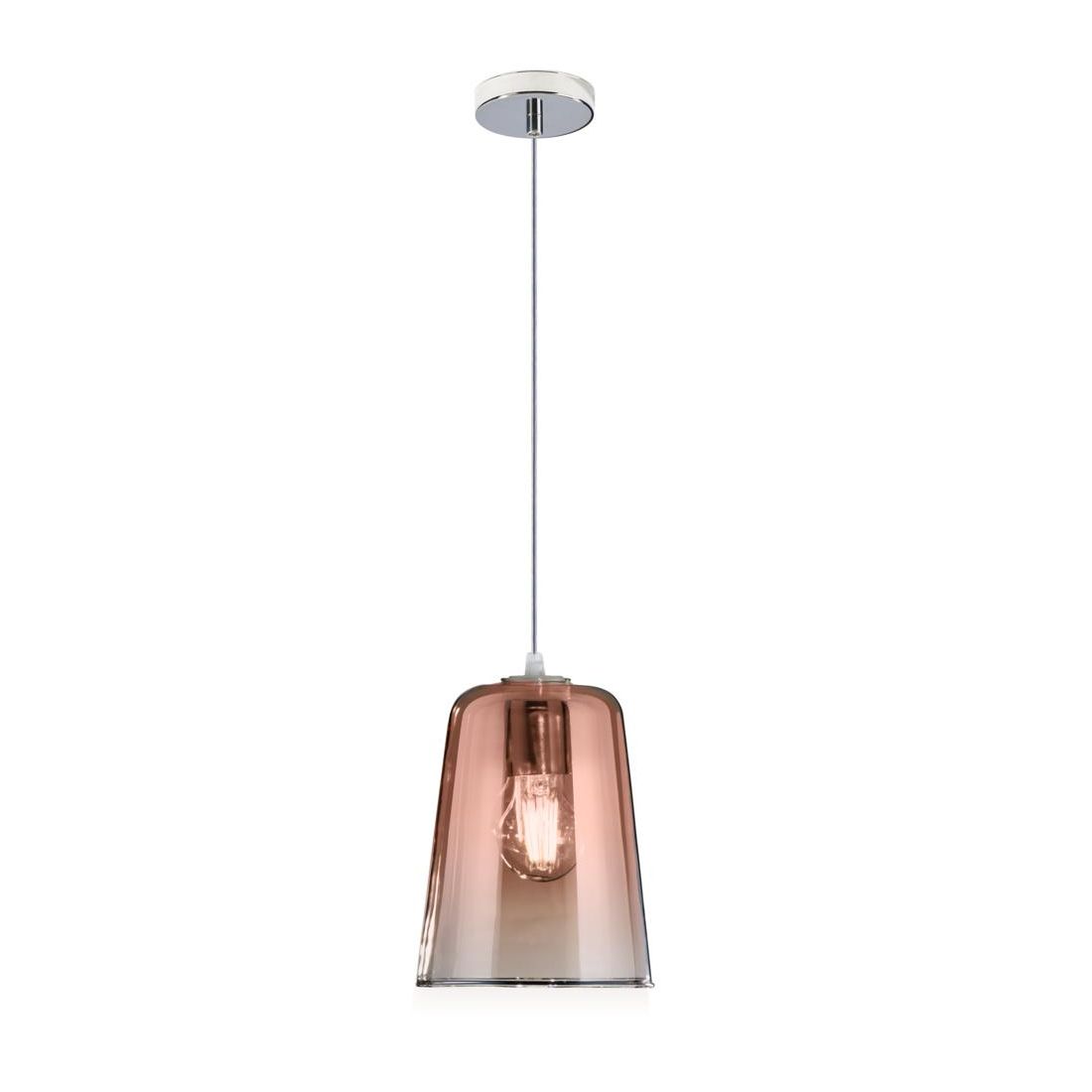 SHADED SOSPENSIONE CON DECENTRO IN METALLO CROMO CON CONI IN VETRO AMBRA CROMO OPPURE RAME