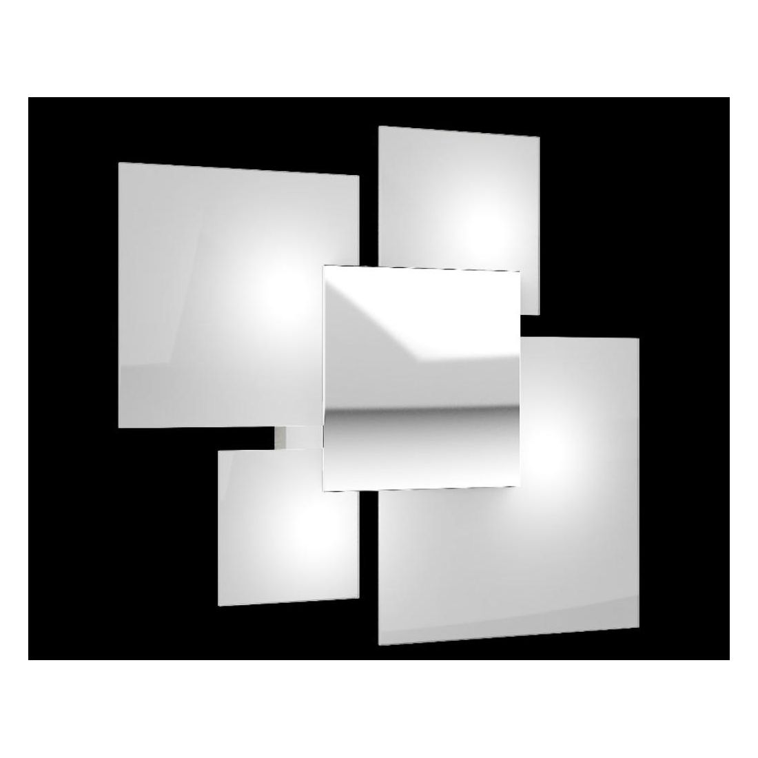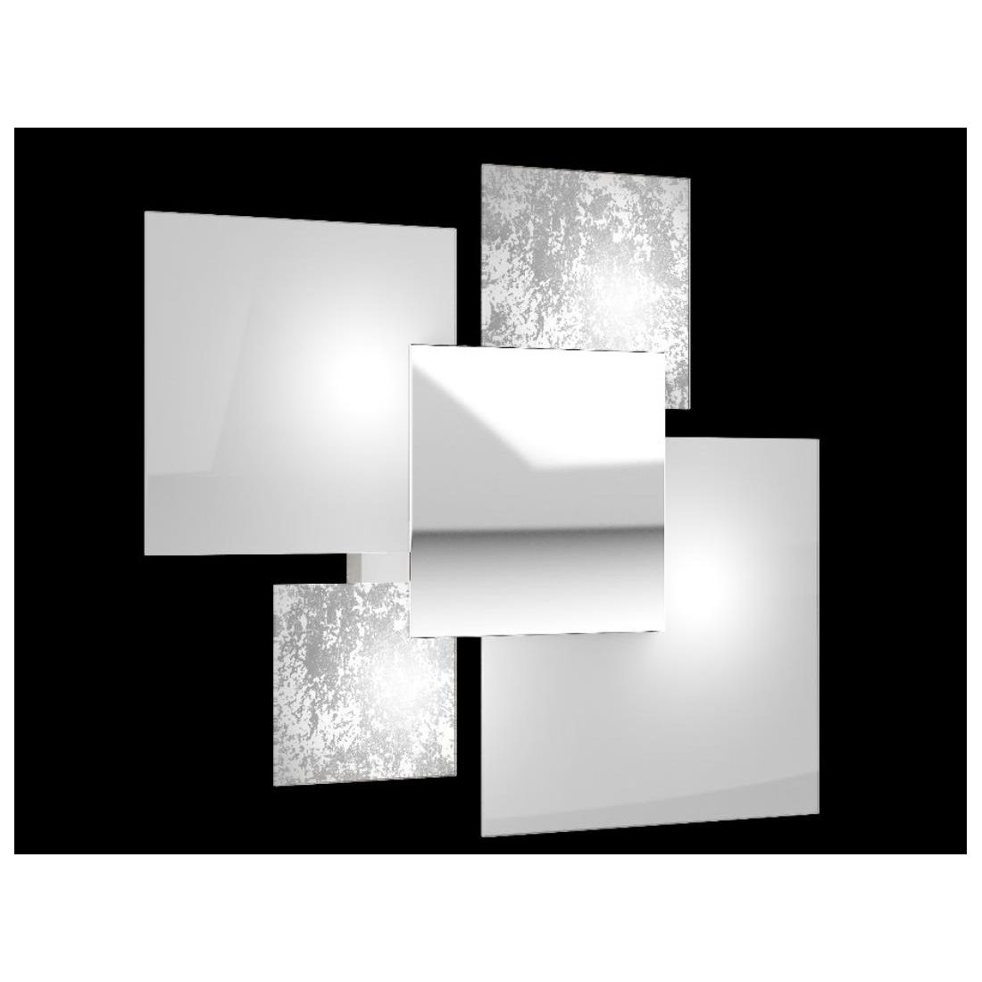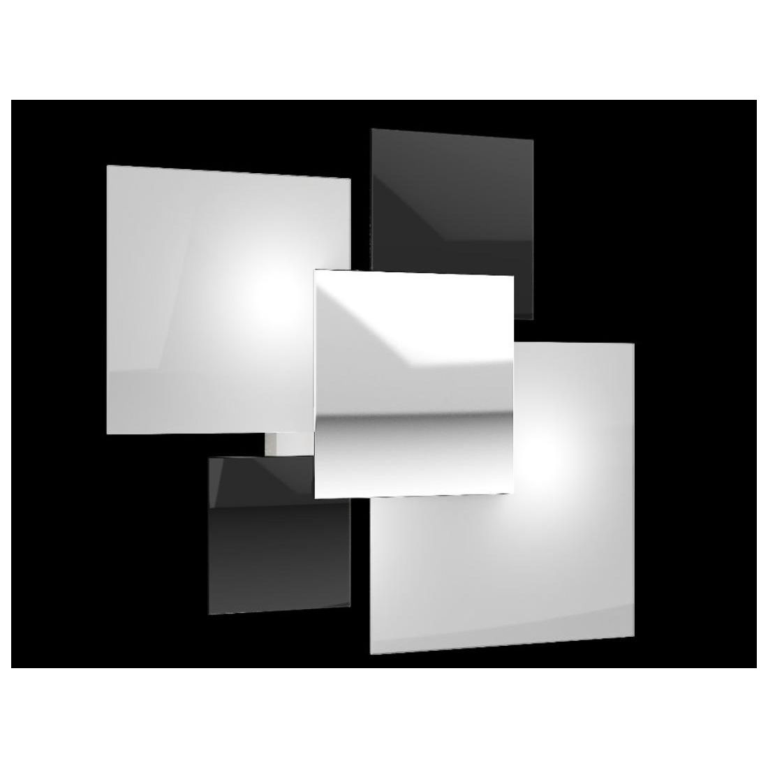 La piastra centrale è in acciaio lucido ed è applicata a calamita; i vetri quadrati di varie misure creano degli incastri molto piacevoli da vedere; adatta ad arredi moderni e contemporanei, perfetta per l'illuminazione del salotto, soggiorno, cucina, ingresso o ufficio.