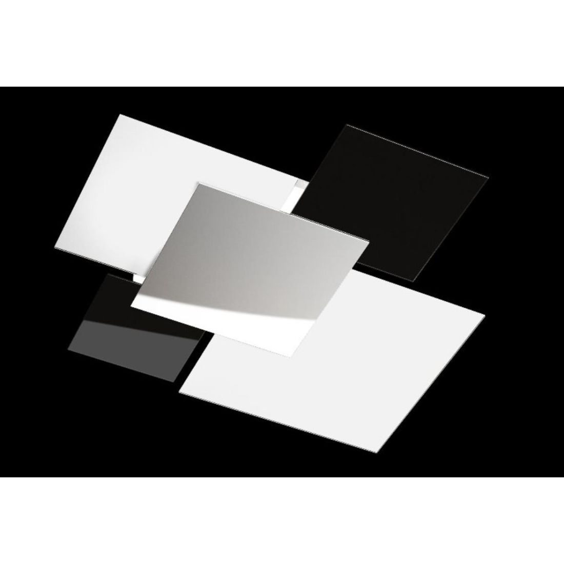 La piastra centrale è in acciaio lucido ed è applicata a calamita; i vetri quadrati di varie misure creano degli incastri molto piacevoli da vedere; adatta ad arredi moderni e contemporanei, perfetta per l'illuminazione del salotto, soggiorno, cucina, ingresso o ufficio.