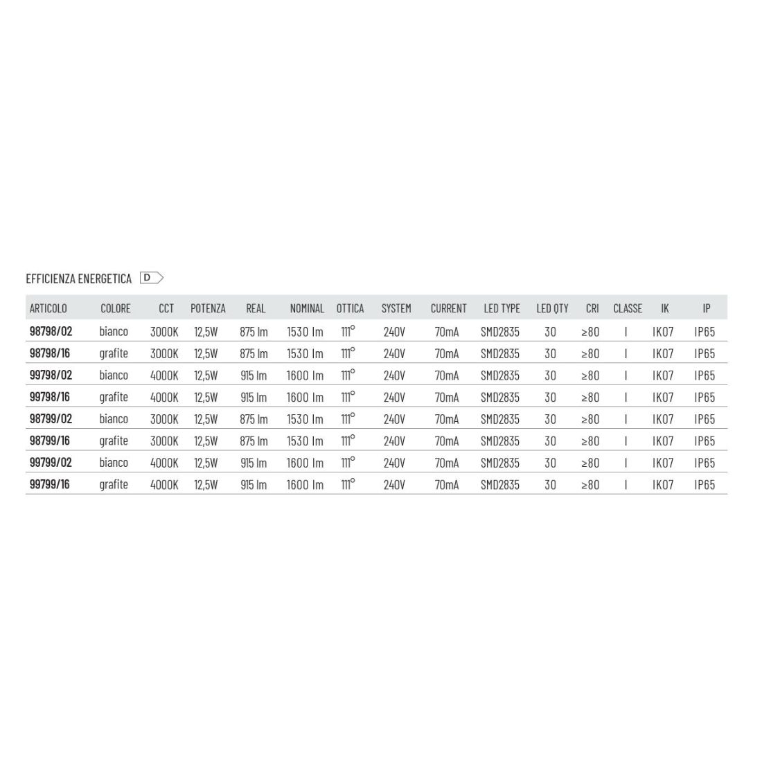 Sorgente luminosa: Led integrato da 12.5w - luce 3000k/lumen 875 - luce 4000k/lumen 915