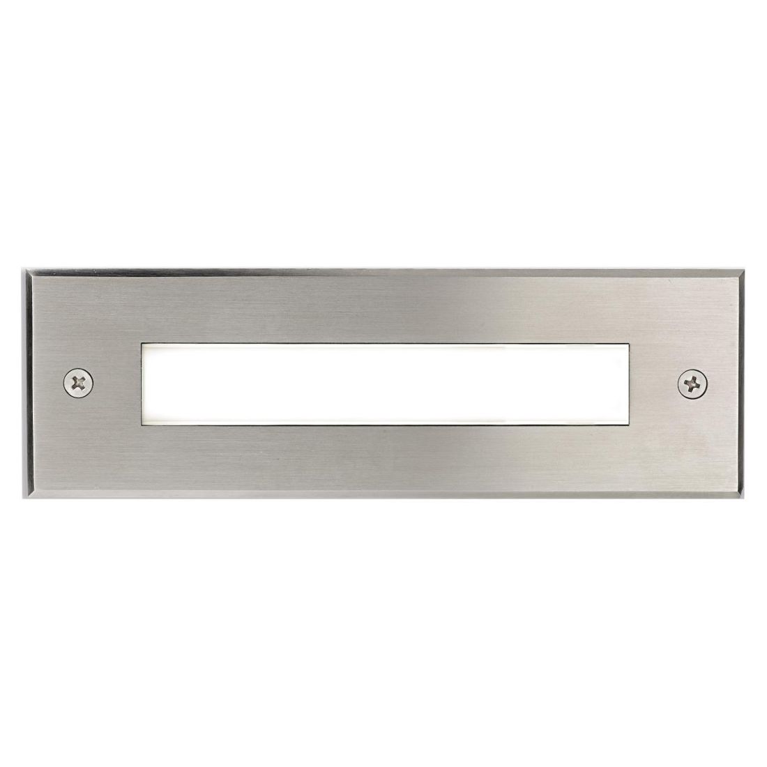 Segnapasso da incasso a parete o da pavimento ideato per ambienti esterni per l'illuminazione di percorsi pedonali o altre aree esterne; ha una struttura rettangolare, con una larghezza di cm 33, realizzata in pressofusione di alluminio con finitura acciaio con diffusore in vetro temperato con spessore di 8 mm.