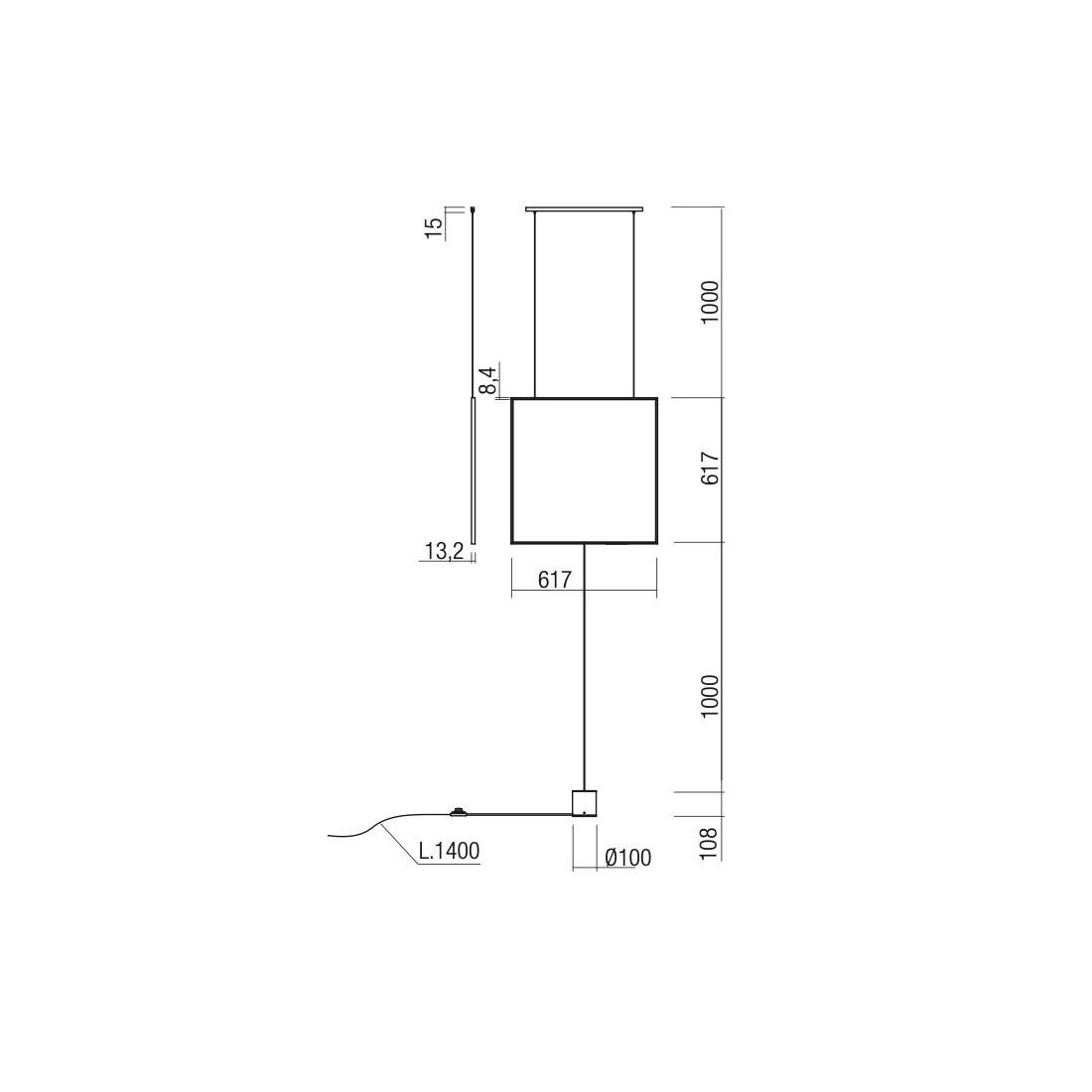 SLICK PIANTANA NERA O ORO QUADRATA ATTACCO A SOFFITTO LED 37W LUCE 3000K MODERNA H280 CM
