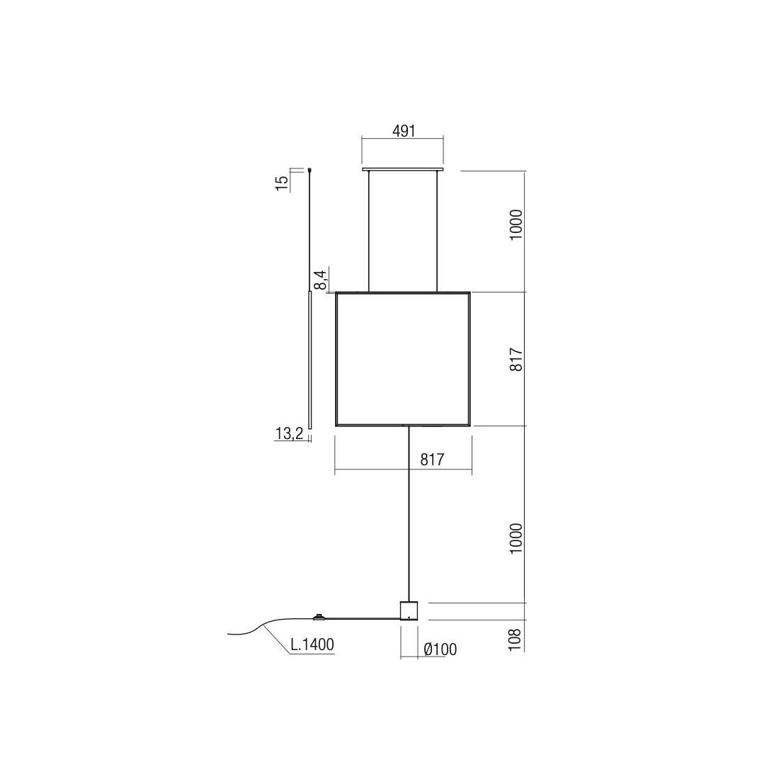 SLICK PIANTANA NERA O ORO QUADRATA ATTACCO A SOFFITTO LED 28W LUCE 3000K MODERNA H260 CM