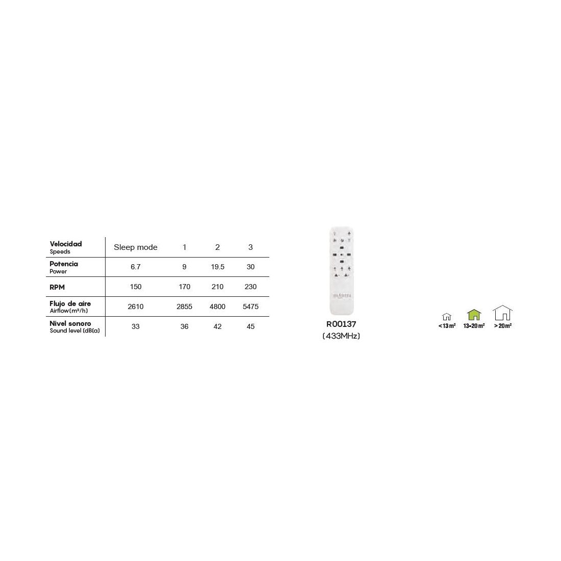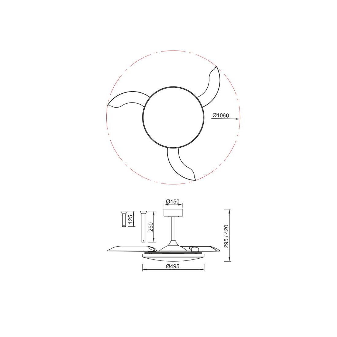 Nella confezione trovate incluse due aste di prolunga utili per regolare l'altezza del ventilatore come più vi necessita (cm 12 oppure cm 25); prodotto ideale per ventilare ed illuminare le vostre cucine, i salotti, le camere da letto, uno studio oppure il vostro ufficio con dimensioni fino a 20 m². L'accensione dell'apparecchio avviene tramite telecomando, incluso nella confezione, con cui si può gestire la funzione ON/OFF e l'accensione e la regolazione delle tre velocità della ventilazione.