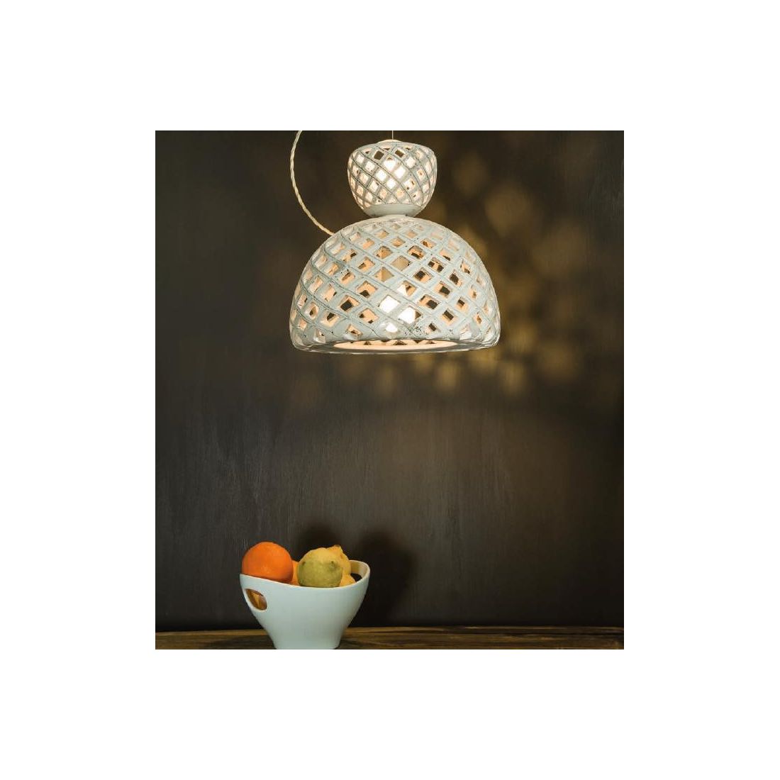 50140-33SOSOSPENSIONE A 2 LUCI STILE VINTAGE IN CERAMICA INTAGLIATA PRODOTTA IN ITALIA DALLA IMAS