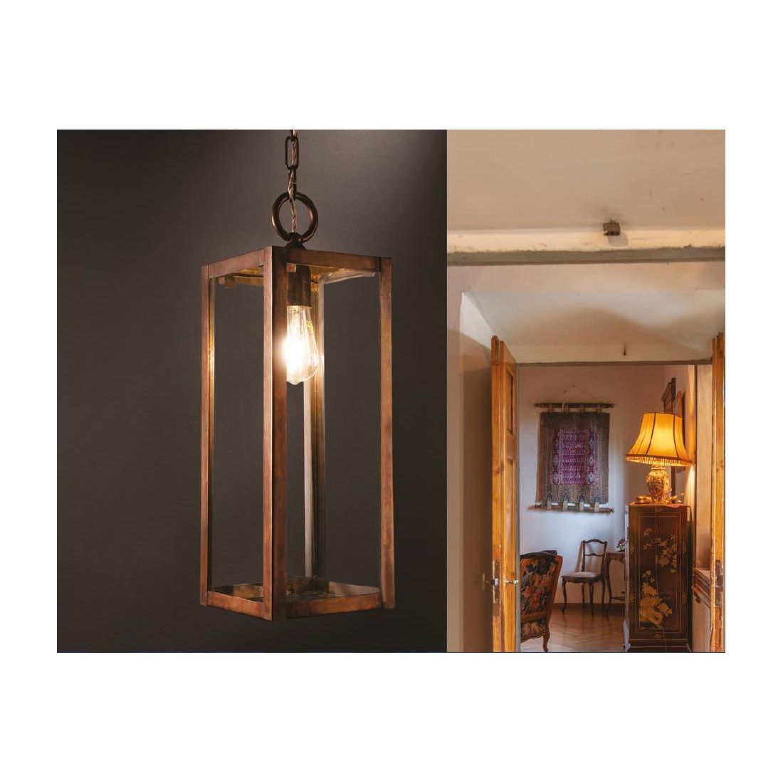 LANTERNA PORTACANDELE RETTANGOLARE IN OTTONE INVECCHIATO MADE IN ITALY DELLA IMAS