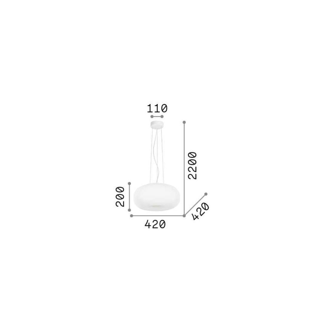 3840SOSPENSIONE ROTONDA IN VETRO BIANCO 2 MISURE CON DESIGN MODERNO LAMPADINE ATTACCO E27