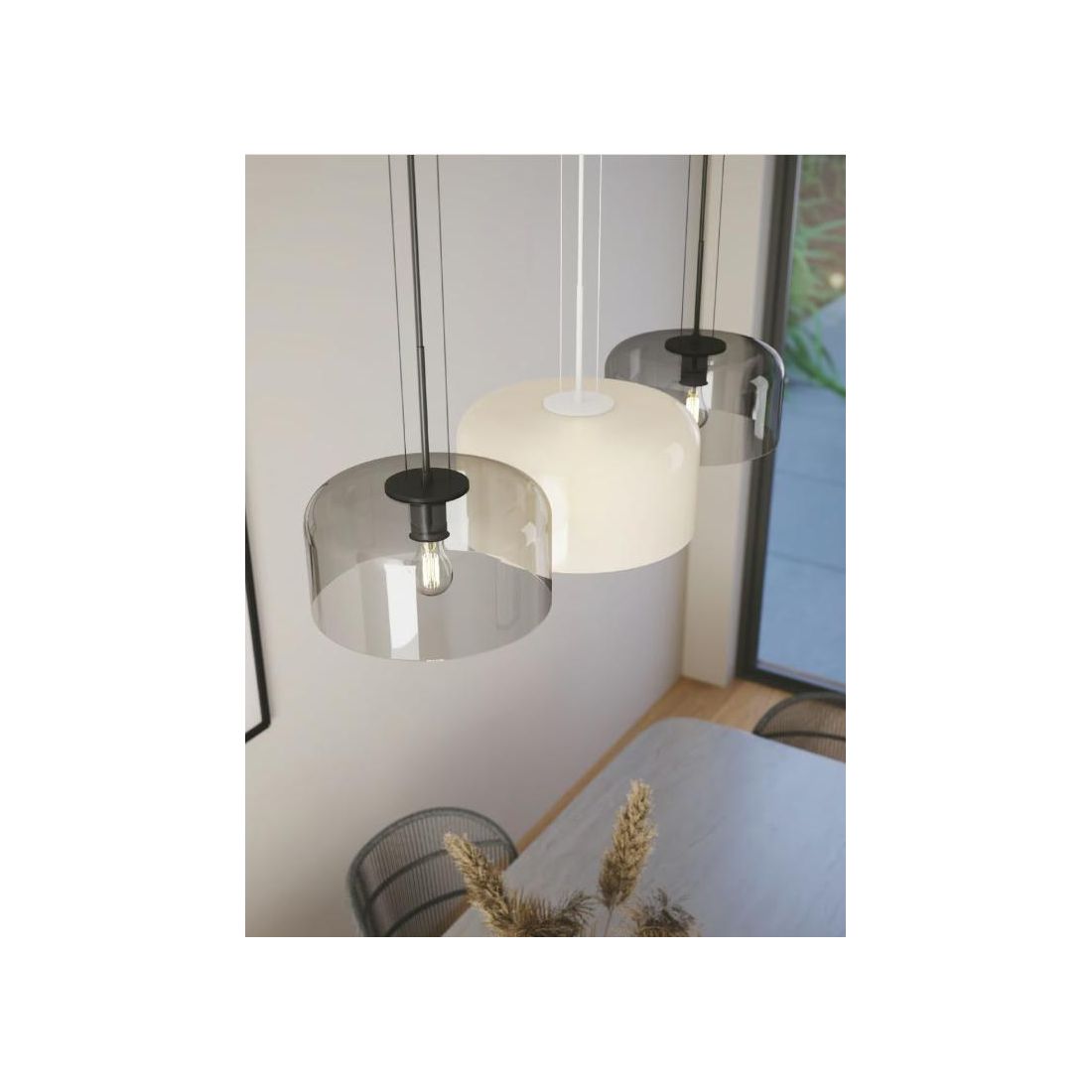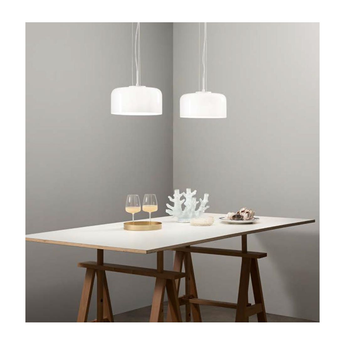 I cavi elettrici regolabili in altezza consentono di scegliere la posizione ideale dal soffitto per un’illuminazione su misura; il vetro soffiato lucido dona un tocco sofisticato mentre la montatura in metallo garantisce solidità e durata nel tempo.