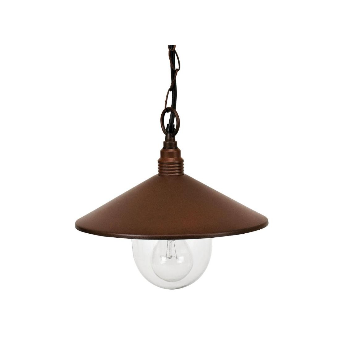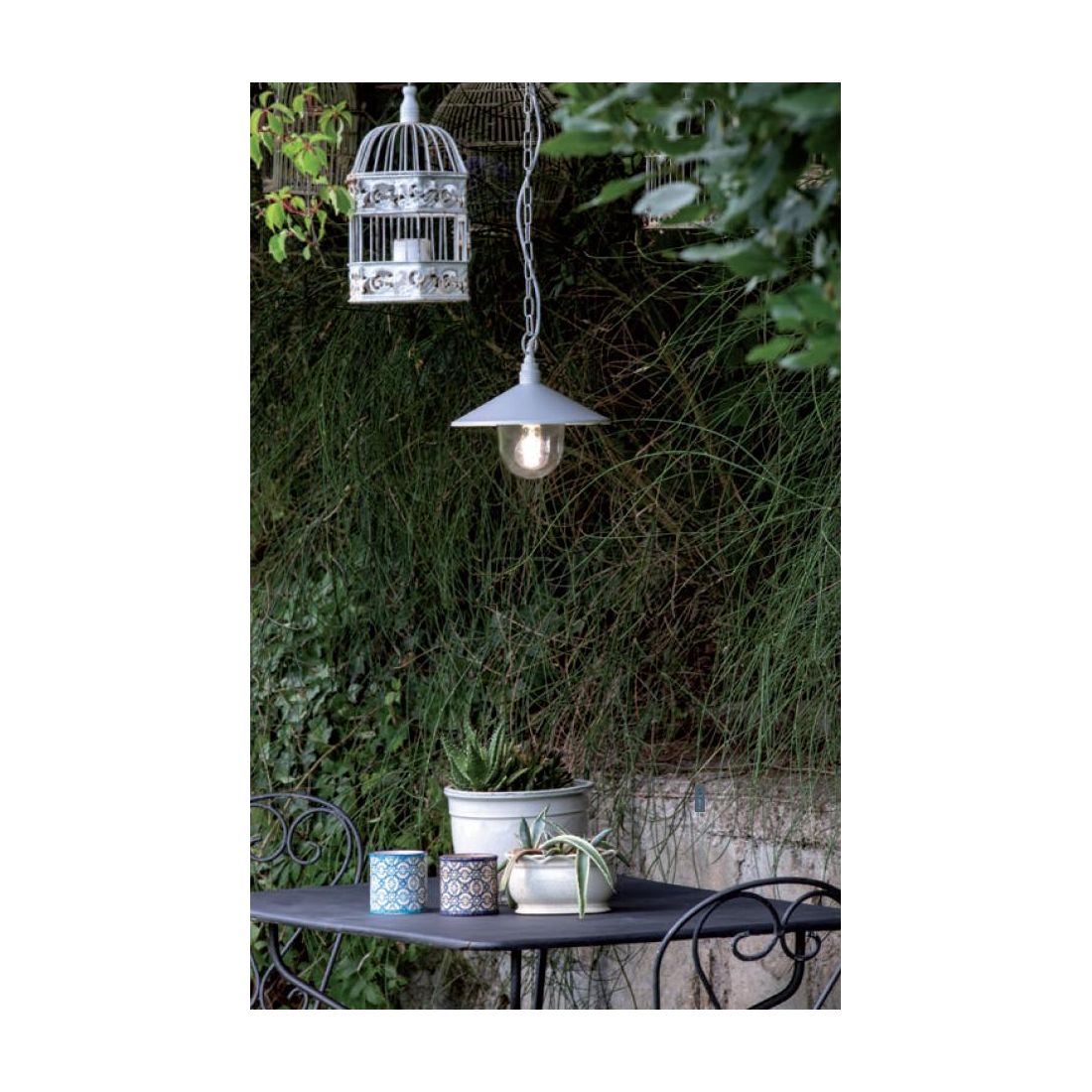 Sospensione singola, dallo stile vintage, con struttura realizzata in alluminio pressofuso, studiata per l'arredamento di ambienti esterni dove è necessario valorizzare ciò che vi circonda.