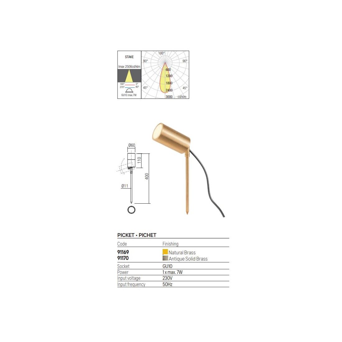 STAKE APPLIQUE DA ESTERNO BIEMISSIONE IN OTTONE IP65 ANTI SALSEDINE 2 COLORI LAMPADINE...