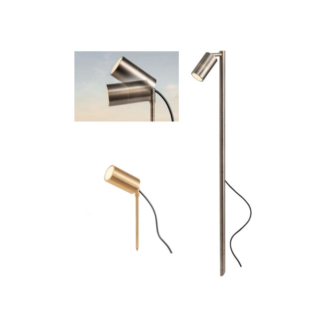 STAKE PALO A 2 LUCI ORIENTABILI IN OTTONE IP65 ANTI SALSEDINE 2 COLORI CON LAMPADINE...