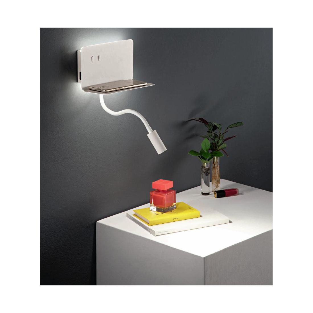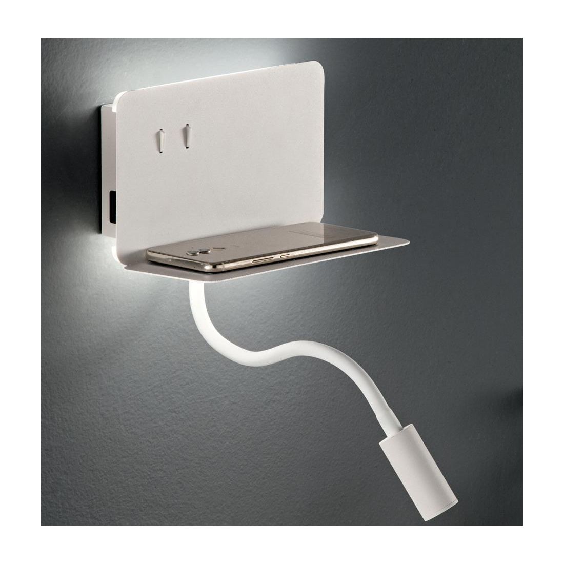 STAN APSTAN APPLIQUE CON PORTA USB,PORTA OGGETTI E BRACCIO FLESSIBILE LED 7,5W LUCE 3000K MODERNA