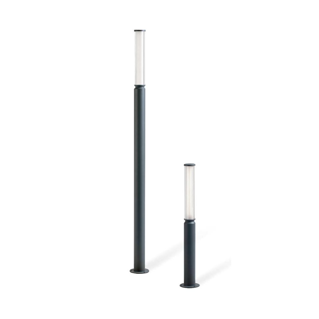 Palo da giardino con un design moderno ed elegante che si presenta con una struttura lineare realizzata in alluminio pressofuso di alta qualità verniciato nel colore Antracite con ampio diffusore in vetro stampato trasparente, caratterizzato da una particolare lavorazione rigata, che consente una distribuzione omogenea della luce.