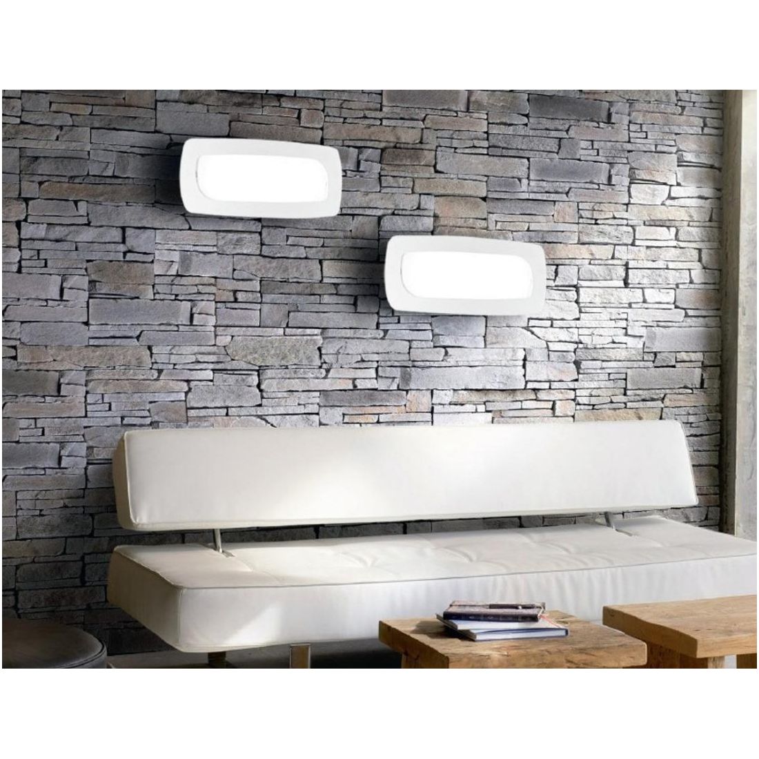 Stone applique grande di illuminando di forma rettangolare con angoli stondati lo rende un applique elegante e funzionale. La montatura in metallo bianco opaco con all'interno 3 portalampade con attacco GX53 con incluse le lampadine Led da 10W Led cadauna.