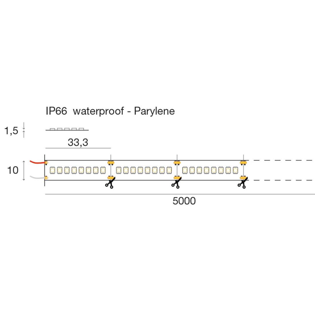 Le strip sono protette da uno strato trasparente di parylene e rivestite in silicone, una pellicola sottile ma restistente che riduce notevolmente le dimensioni delle strip e non ingiallisce nel tempo.