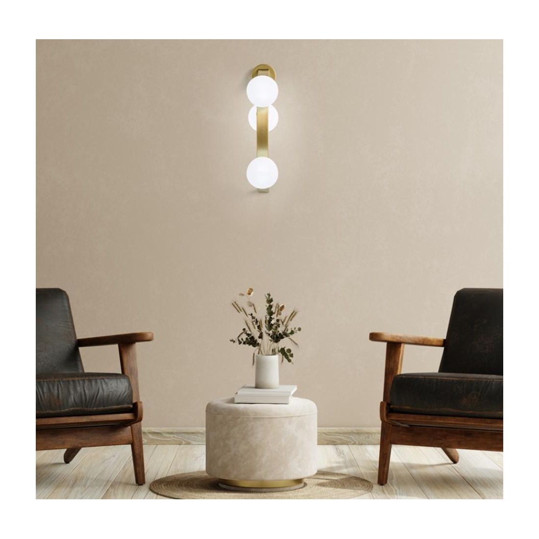 SUNSET SOSPENSIONE 4 LUCI ORO CON SFERE IN VETRO BIANCO LED 24W LUCE 3000K DIMMERABILE...