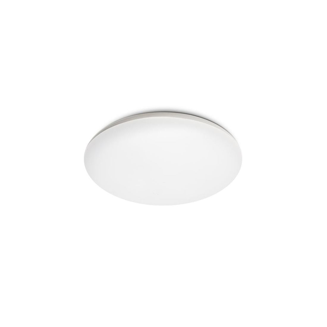Piccola lampada da soffitto ideale per arredare ed illuminare ambienti esterni, dal design minimal ma moderno, prodotta in Italia dalla Linea Light, composta dal diffusore piatto di forma rotonda con diametro di cm 25, realizzato in polietilene lineare bianco, con un peso complessivo di 0.620 kg, presenta una classe di isolamento II ed è installabile sia a parete che a soffitto.