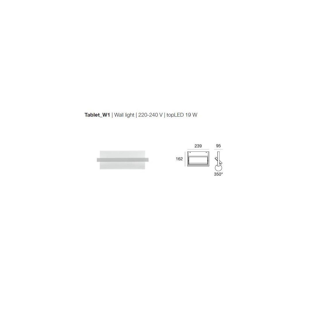 TABLET W2 LINEA LIGHT APPLIQUE 36 CM 19W LED COLORE BIANCO MODERNA LUCE DIREZIONABILE