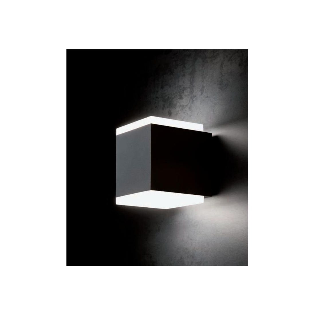 Lampada da parete in alluminio pressofuso, dalla forma cubica, nata per illuminare ambienti esterni ed interni; di adatta perfettamente alle diverse situazioni abitative, mettendo in rilievo un ampio spettro di effetti che solo la luce è in grado di produrre.