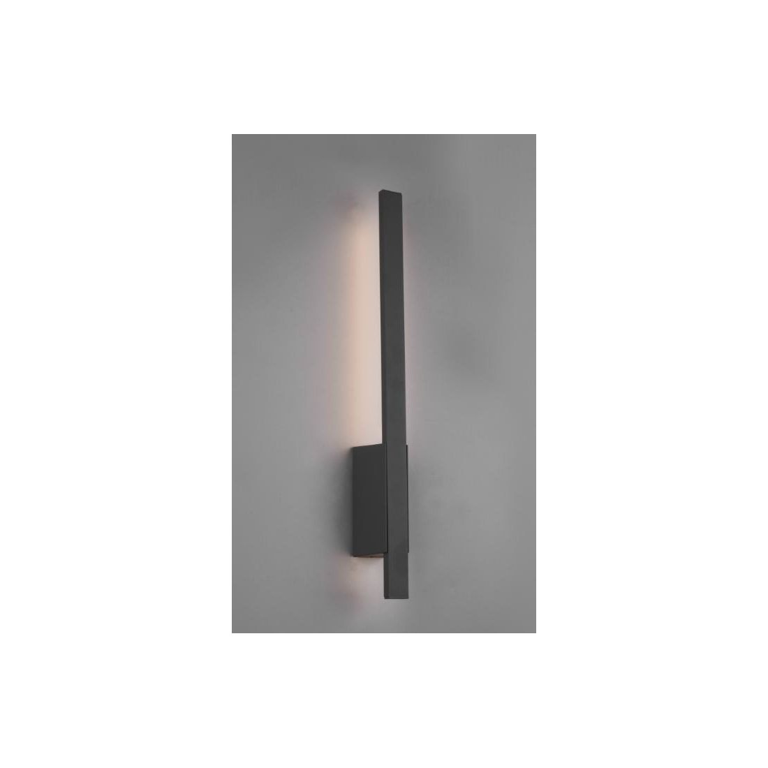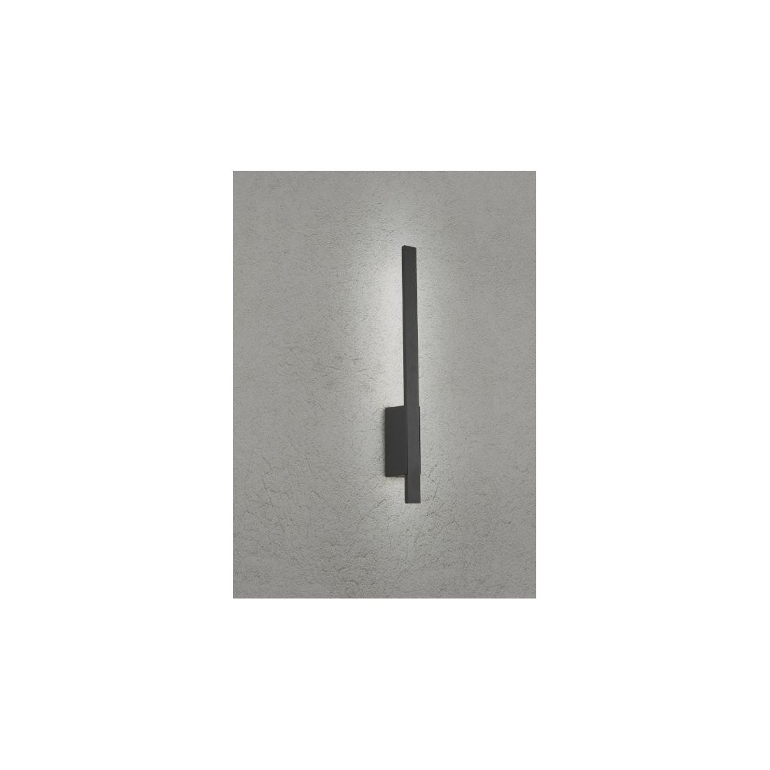 Lampada da parete dallo stile minimalista, con la struttura composta da una base a muro e da un asta sottile realizzati in alluminio pressofuso verniciato nel colore Antracite; il diffusore, con uno spessore di soli cm 1.1, offre una luce soffusa indiretta verso la parete.