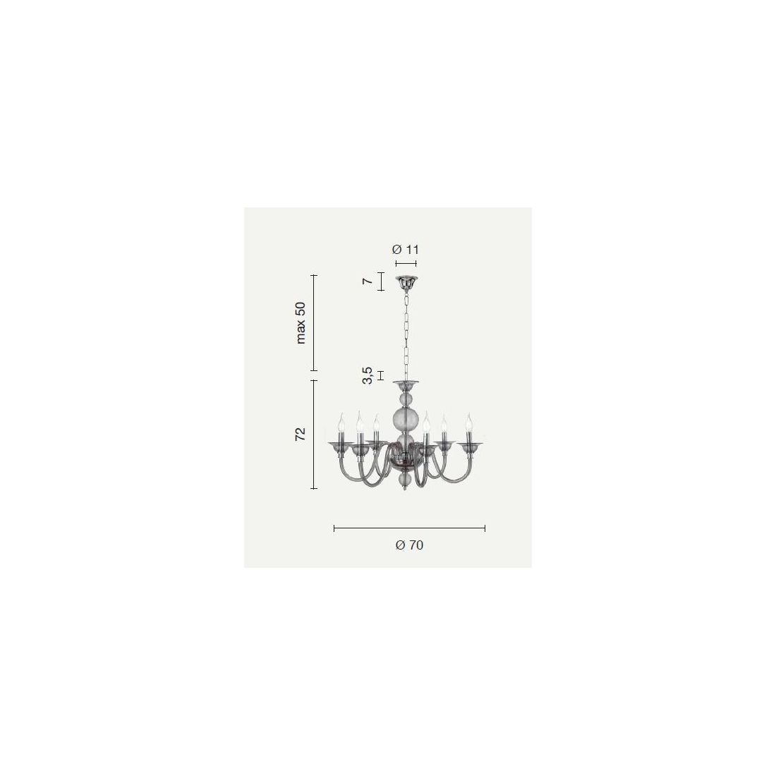 TEBE LAMPADARIO A SOSPENSIONE CLASSICO 12 LUCI IN VETRO LAVORATO A MANO 6 COLORI