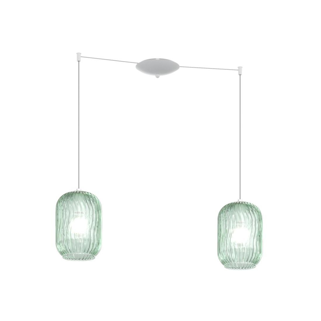 TENDER SOSPENSIONE 7 LUCI RETTANGOLARE FINITURA BIANCO CON DIFFUSORI IN VETRO COLORATO