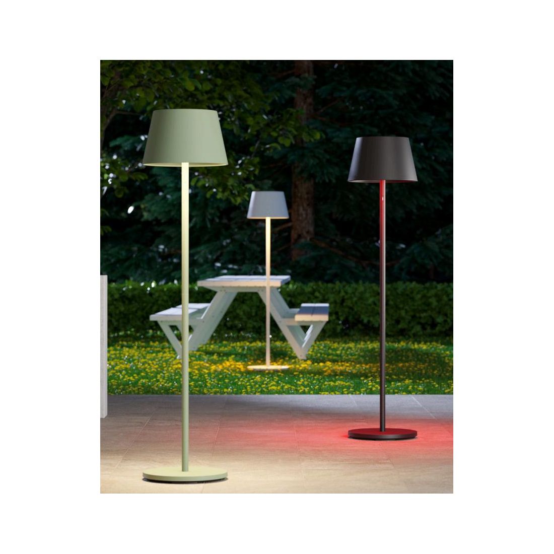 Lampada da terra ricaricabile che combina funzionalità avanzate e un design contemporaneo offrendo una soluzione perfetta per illuminare e valorizzare qualsiasi spazio. Si presenta con una struttura realizzata in pressofusione di alluminio disponibile nei colori Bianco, Nero e Verde Salvia e con il diffusore in policarbonato trasparente che garantisce un’illuminazione omogenea e delicata.
