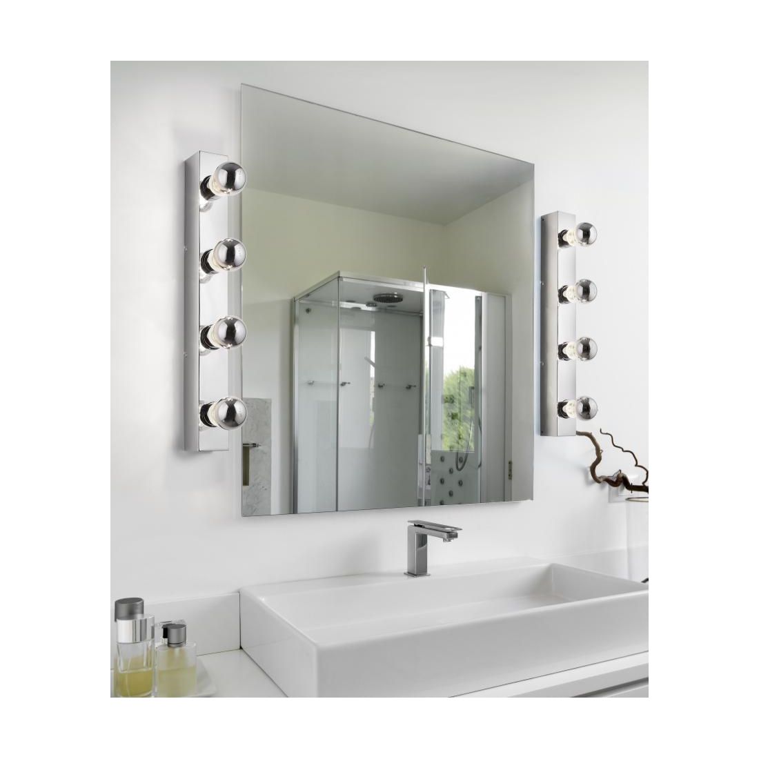 THEATRO APTHEATRO APPLIQUE DA SPECCHIO IN METALLO CROMATO CON 4 LAMPADINE A VISTA IP44 LARGHEZZA CM 55