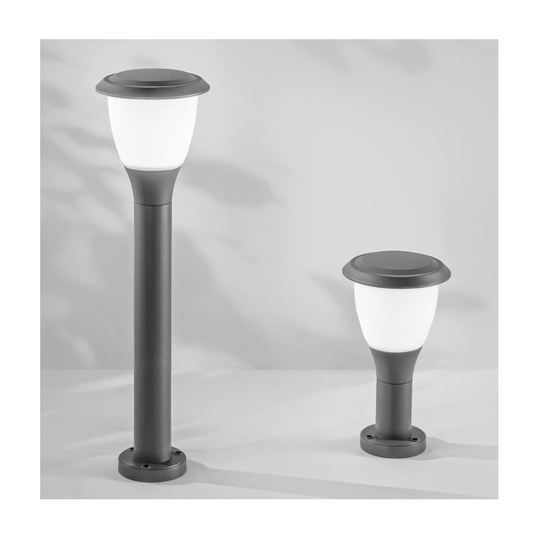 Lampioncino da esterno, dallo stile classico, disponibile in due altezze: 30 cm o 60 cm che viene realizzato in alluminio con una finitura Antracite e che presenta un diffusore in policarbonato bianco opale che garantisce una diffusione della luce morbida e uniforme.
