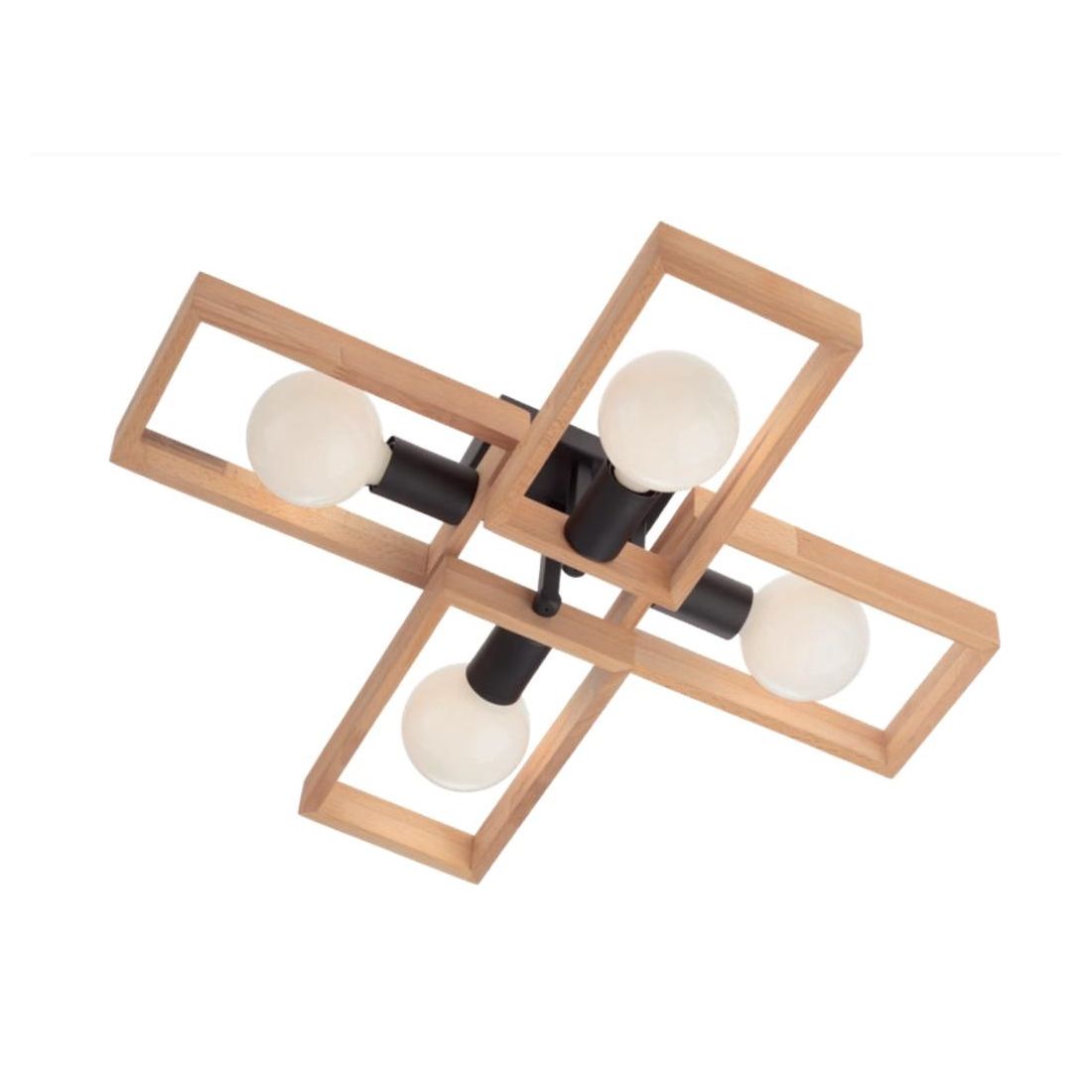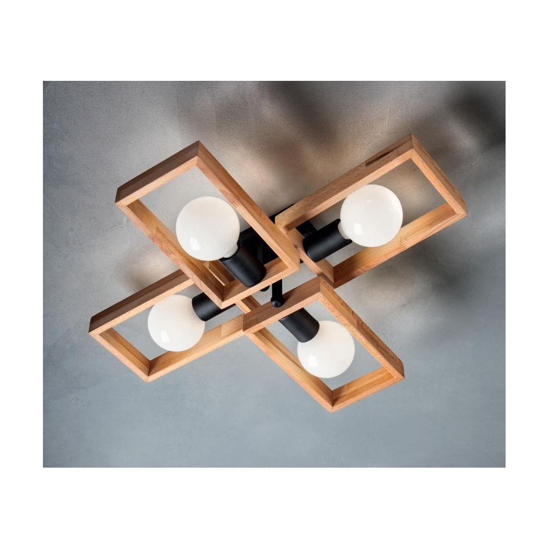 TIMBER SOSPENSIONE 5 LUCI NERA CON CORNICE IN LEGNO NATURALE MODERNA LAMPADINE 5XE27