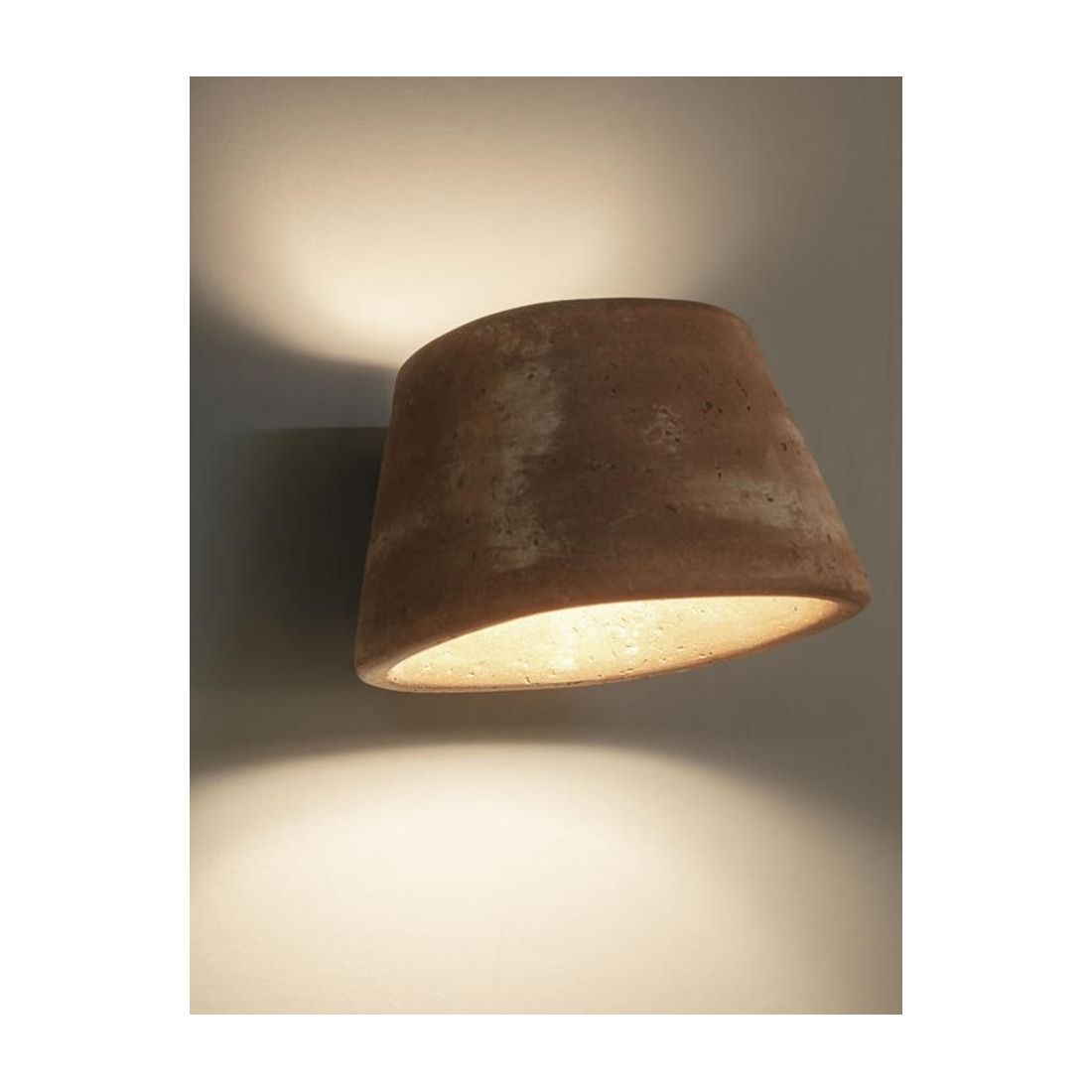 Applique bi-emissione di luce che si presenta con una struttura realizzata in terracotta nei colori Nero, Bianco oppure Galestro (a vostra scelta) e con il diffuore in PMMA. Per la posizione del diffusore e la forma della lampada, la luce è orientata in modo da dare più luce verso il basso che verso l'alto, un’esigenza questa piuttosto comune nell’illuminazione esterna.
