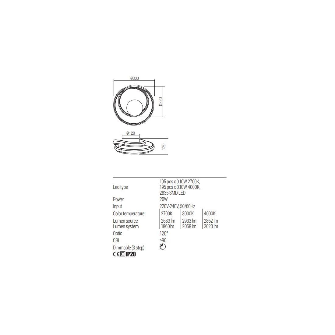 TORSION PLAFONIERA LED 40W LUCE CCT 2700K-3000K-4000K DIMMERABILE ALLUMINIO 3 COLORI...
