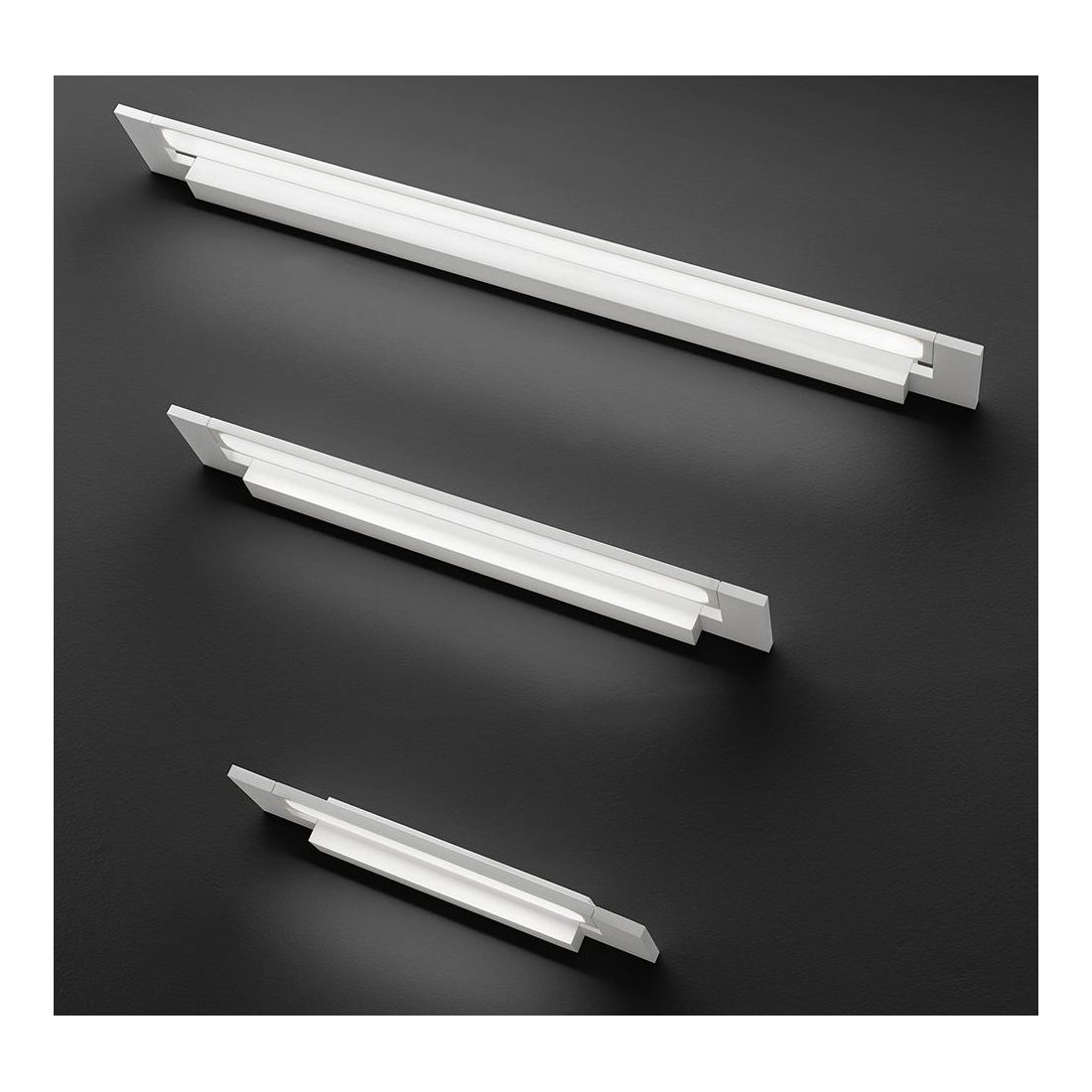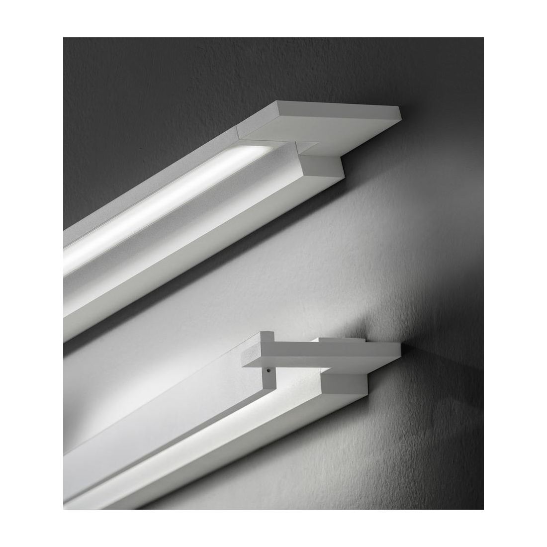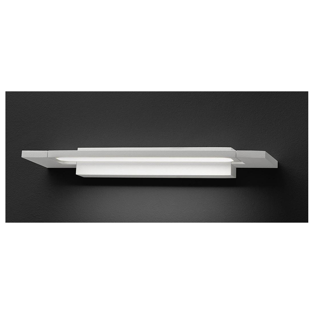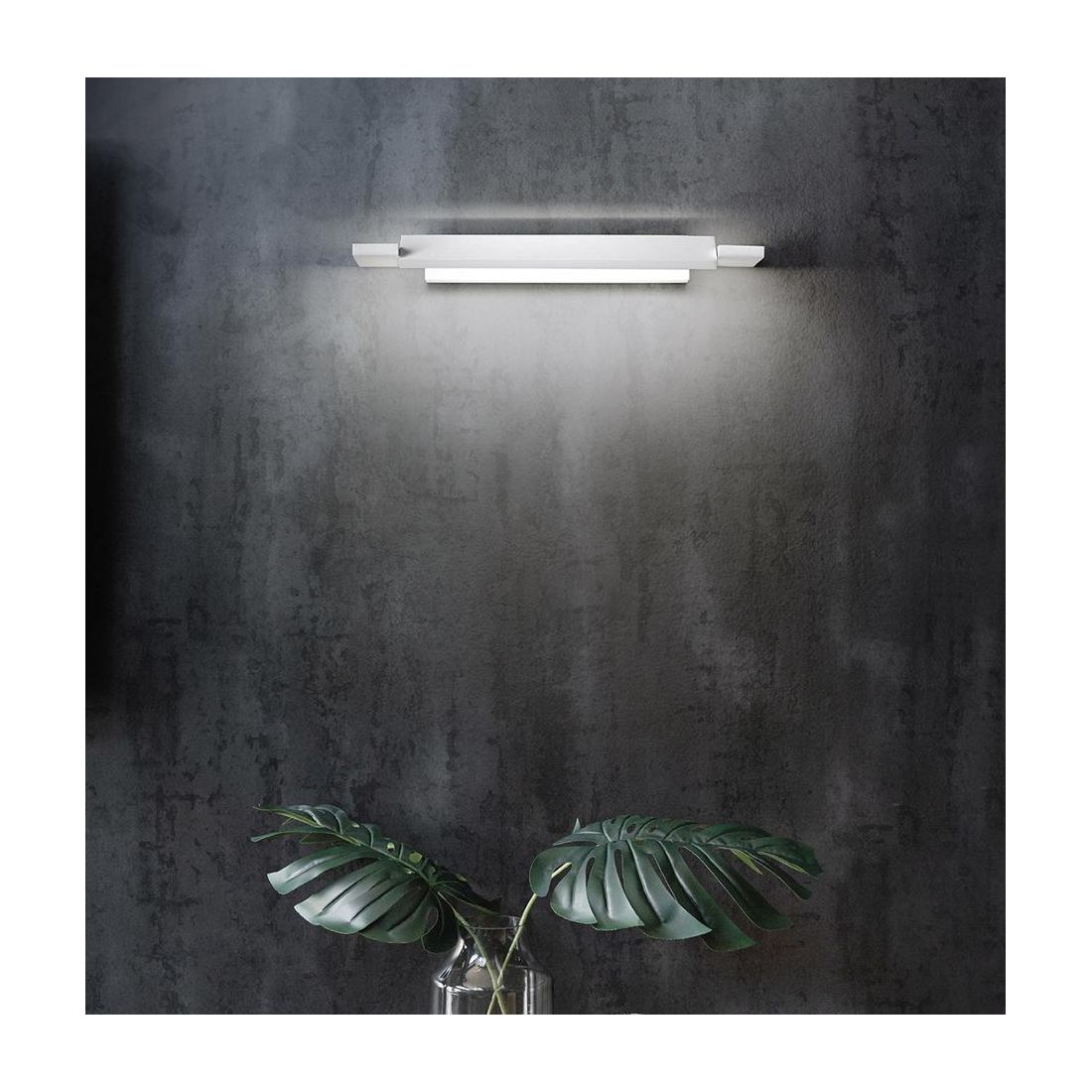 Applique rettangolare che si presenta con una struttura in metallo con finitura Bianca e con il diffusore in metacrilato bianco; quest'ultimo è orientabile a 180° in questo modo potrete creare diversi scenari luminosi: luce diretta e indiretta oppure una luce diffusa in avanti e sulla parete.