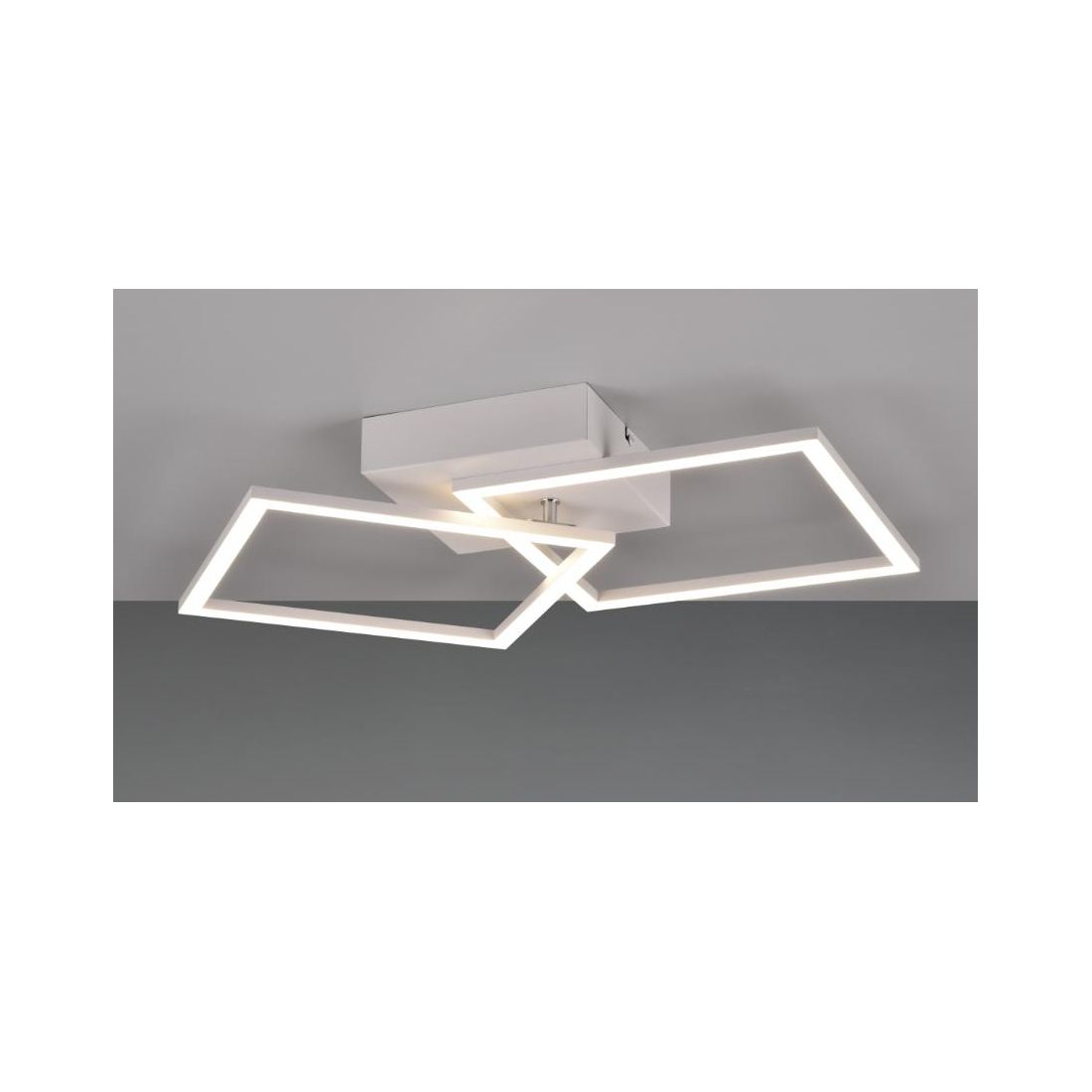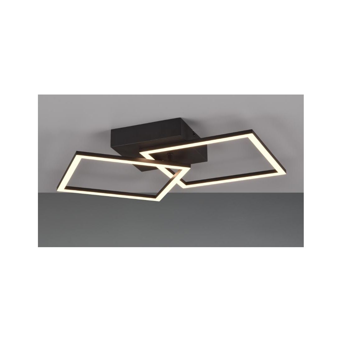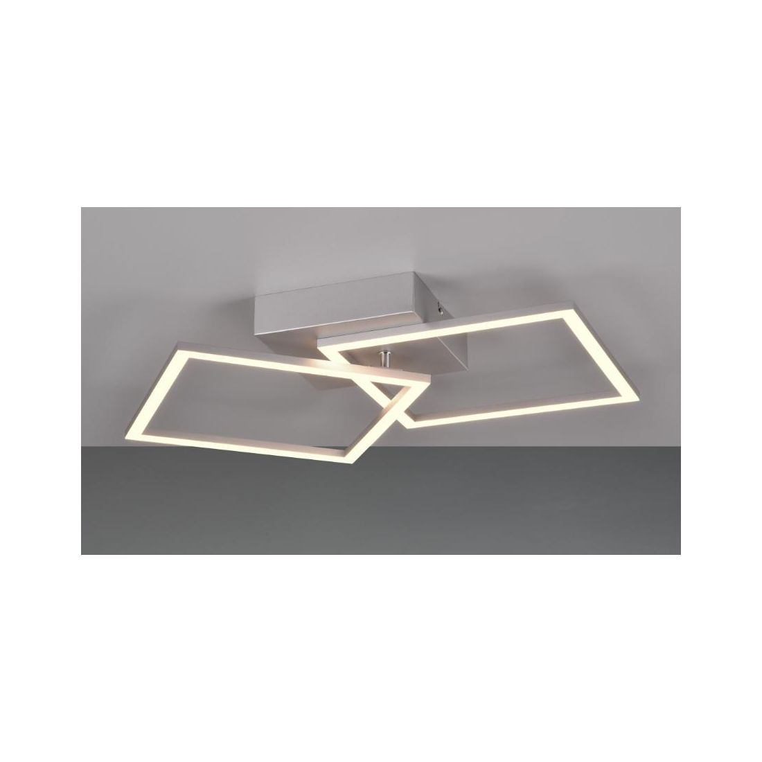 Plafoniera dal design moderno con una struttura composta da base a soffitto e da 2 quadrati orientabili, il tutto realizzato in metallo con finitura Nera, Bianca, Caffè oppure Titanio (a vostra scelta), con il diffusore bianco opale che emette una luce diffusa nell'ambiente; ideale per il salotto, soggiorno, cucina, ingresso, camera da letto oppure l'ufficio.