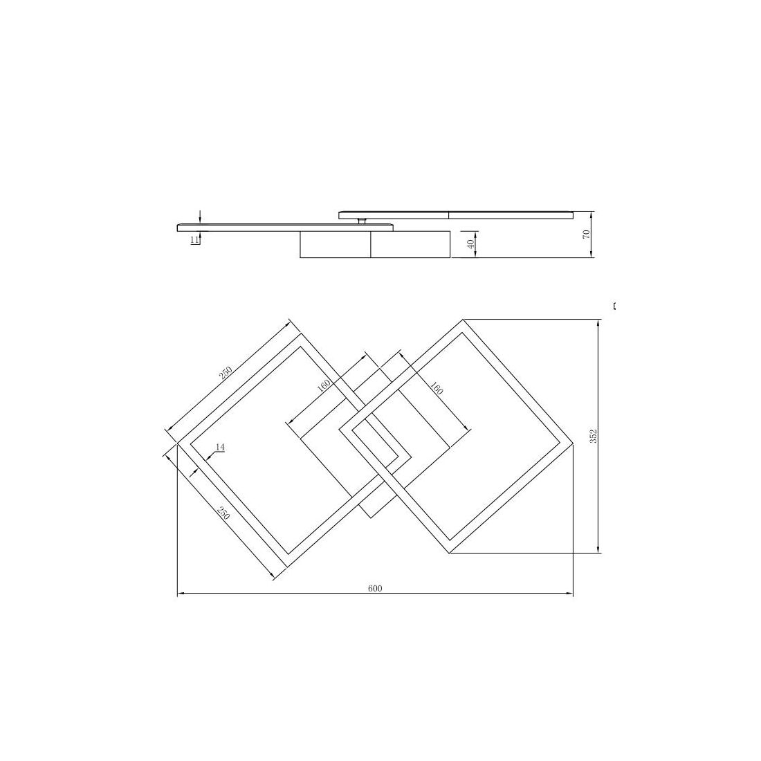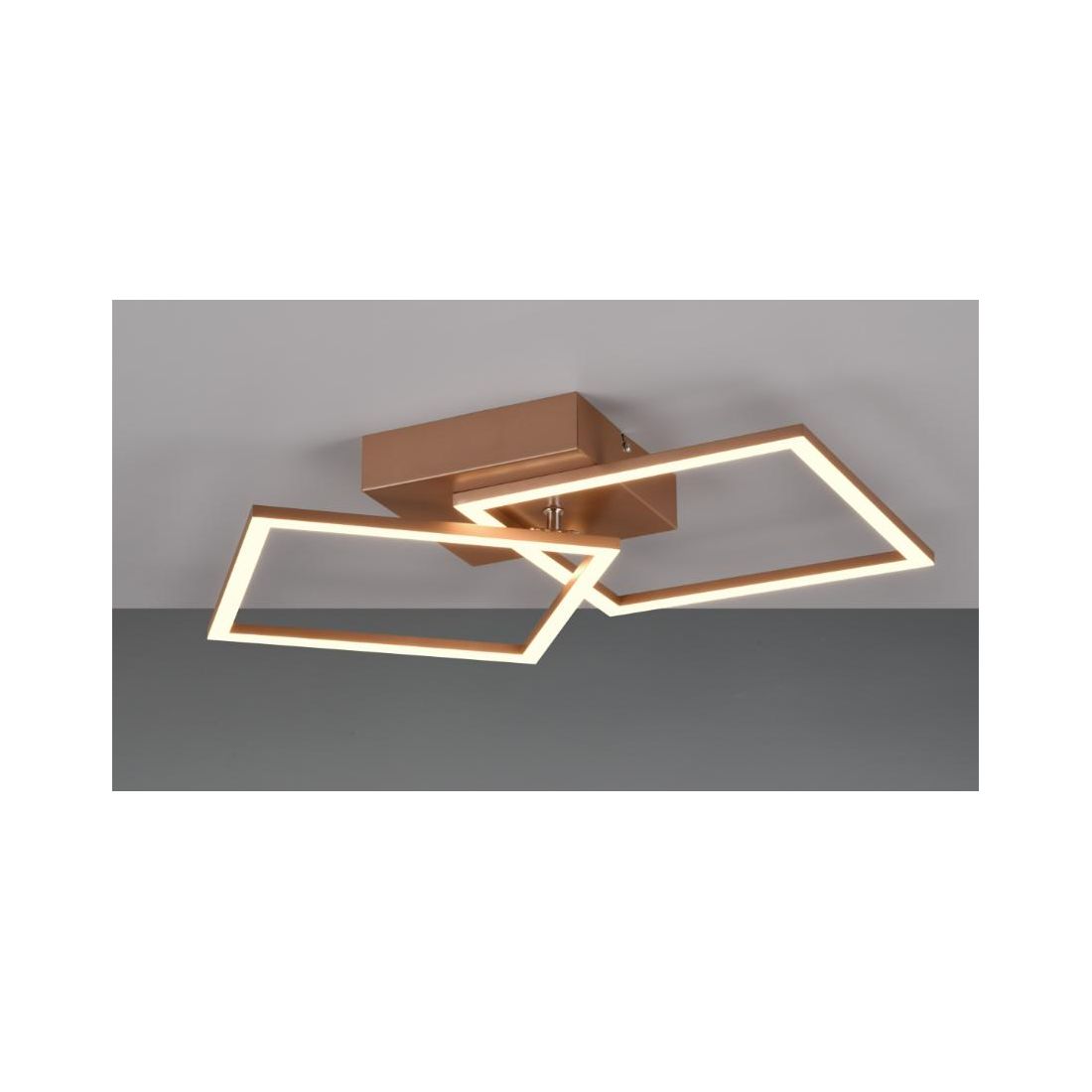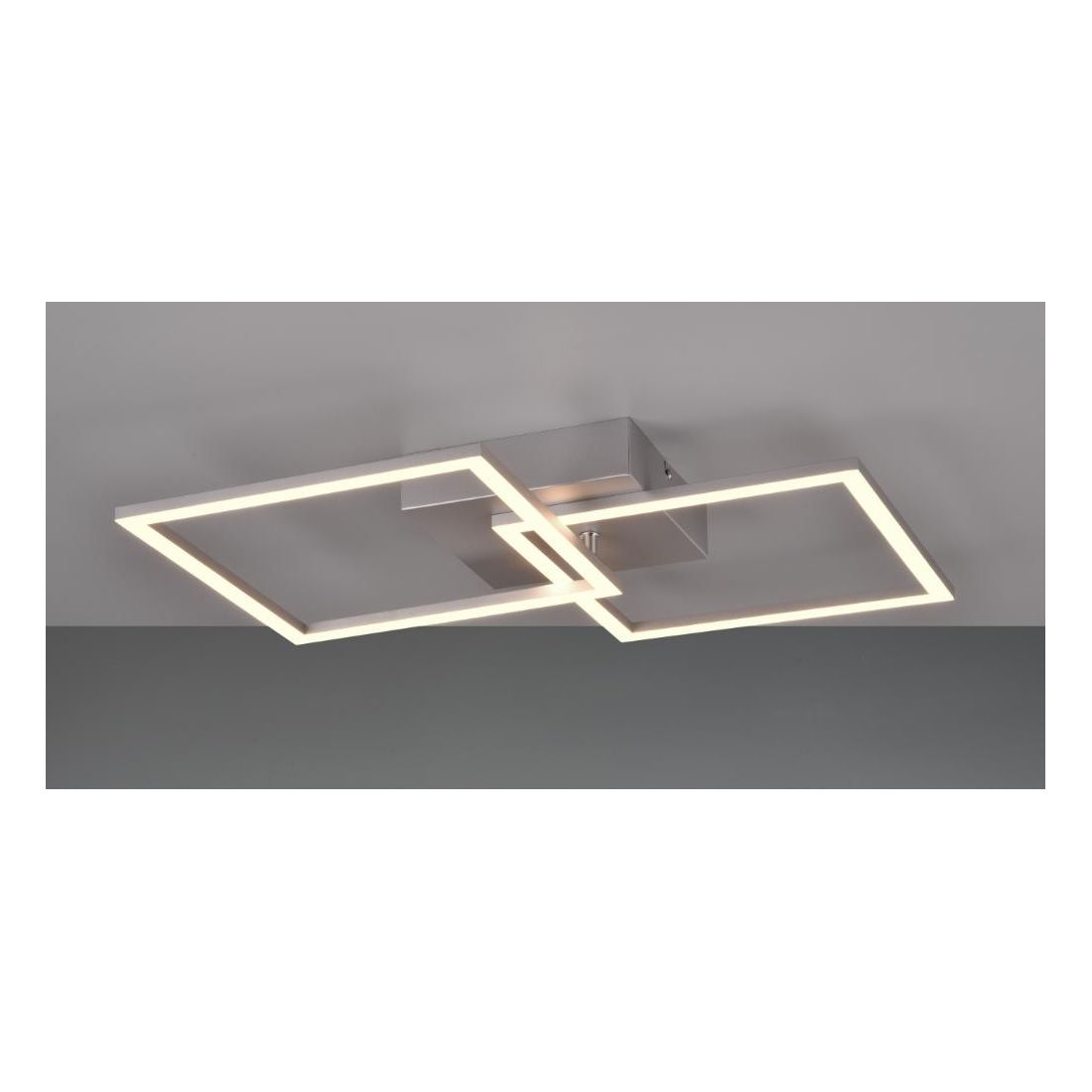 Plafoniera dal design moderno con una struttura composta da base a soffitto e da 2 quadrati orientabili, il tutto realizzato in metallo con finitura Nera, Bianca, Caffè oppure Titanio (a vostra scelta), con il diffusore bianco opale che emette una luce diffusa nell'ambiente; ideale per il salotto, soggiorno, cucina, ingresso, camera da letto oppure l'ufficio.