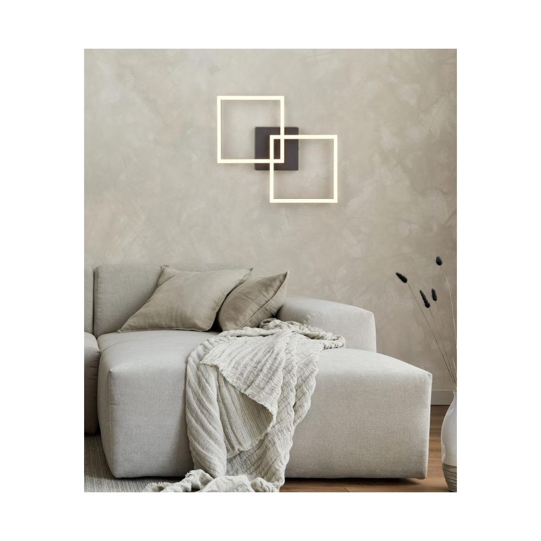 Grazie ai quadrati orientabili potete dare a questa plafoniera la forma o il posizionamento che più desiderate e che più vi piace; la plafoniera integra una sorgente luminosa a Led da 20w; nella versione con finitura Bianca ha una resa luminosa di 2500 lumen e una luce bianca naturale 4000k mentre nelle versioni con finitura Nera, Caffè oppure Titanio la lampada ha una resa luminosa di 2250 lumen con una luce bianca calda 3000k.